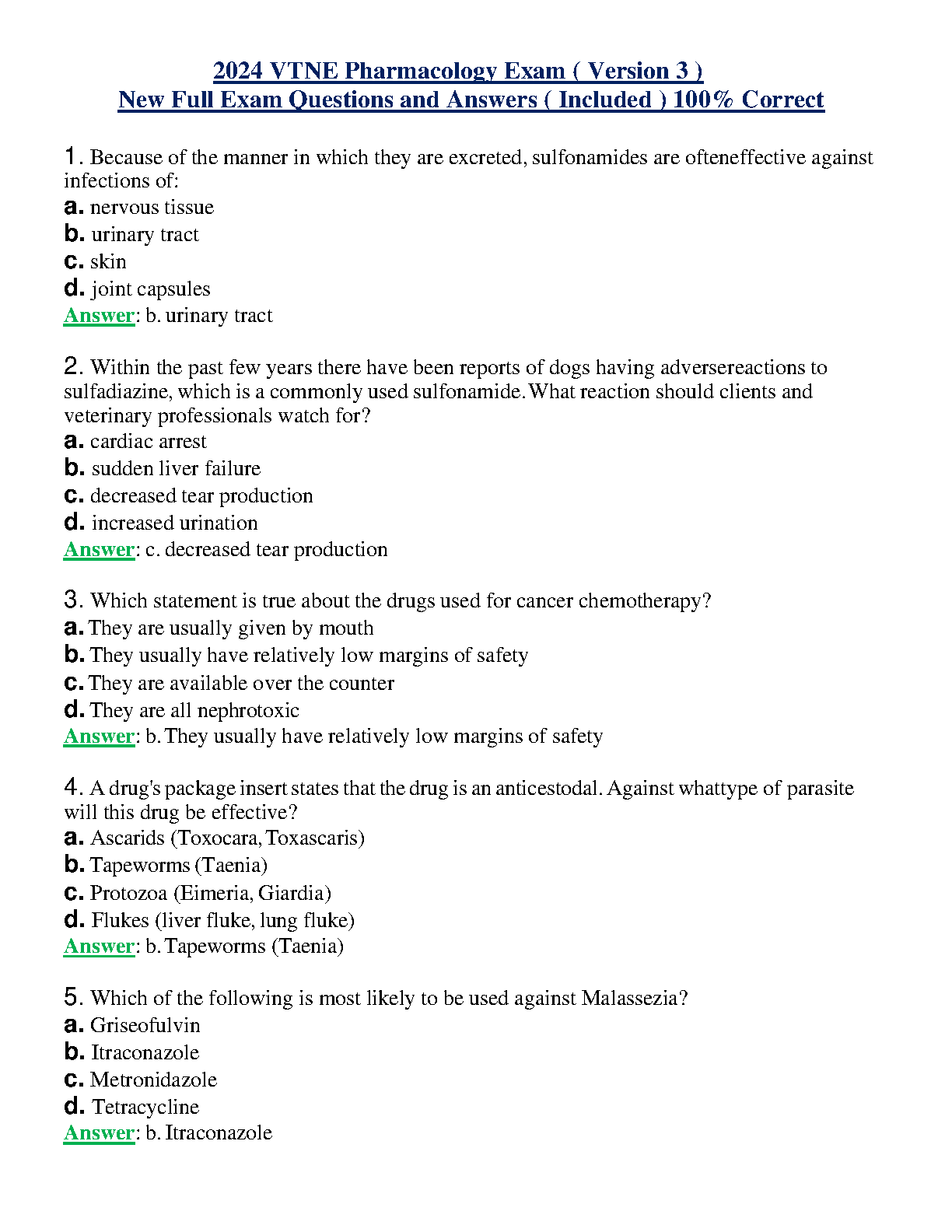 2024 VTNE Pharmacology Exam (Version 3) - New Full Exam Questions and Answers (Included) 100% Correct - By [Author's Name]