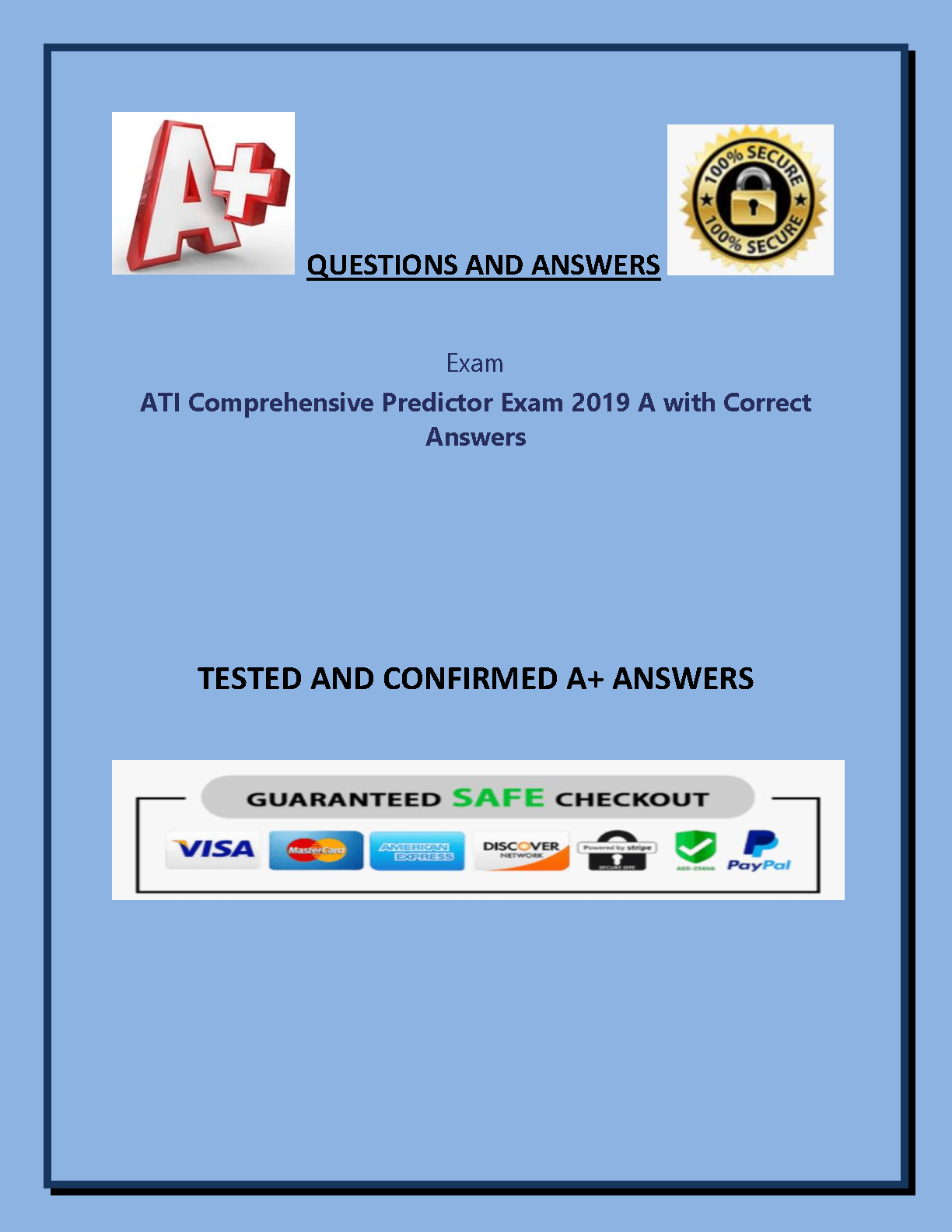 This resource is a comprehensive study guide to help students prepare for the ATI Comprehensive Predictor Exam 2019 A. It includes all the questions and answers, tested and confirmed to be accurate. This will help you ace your exams on your first attempt.