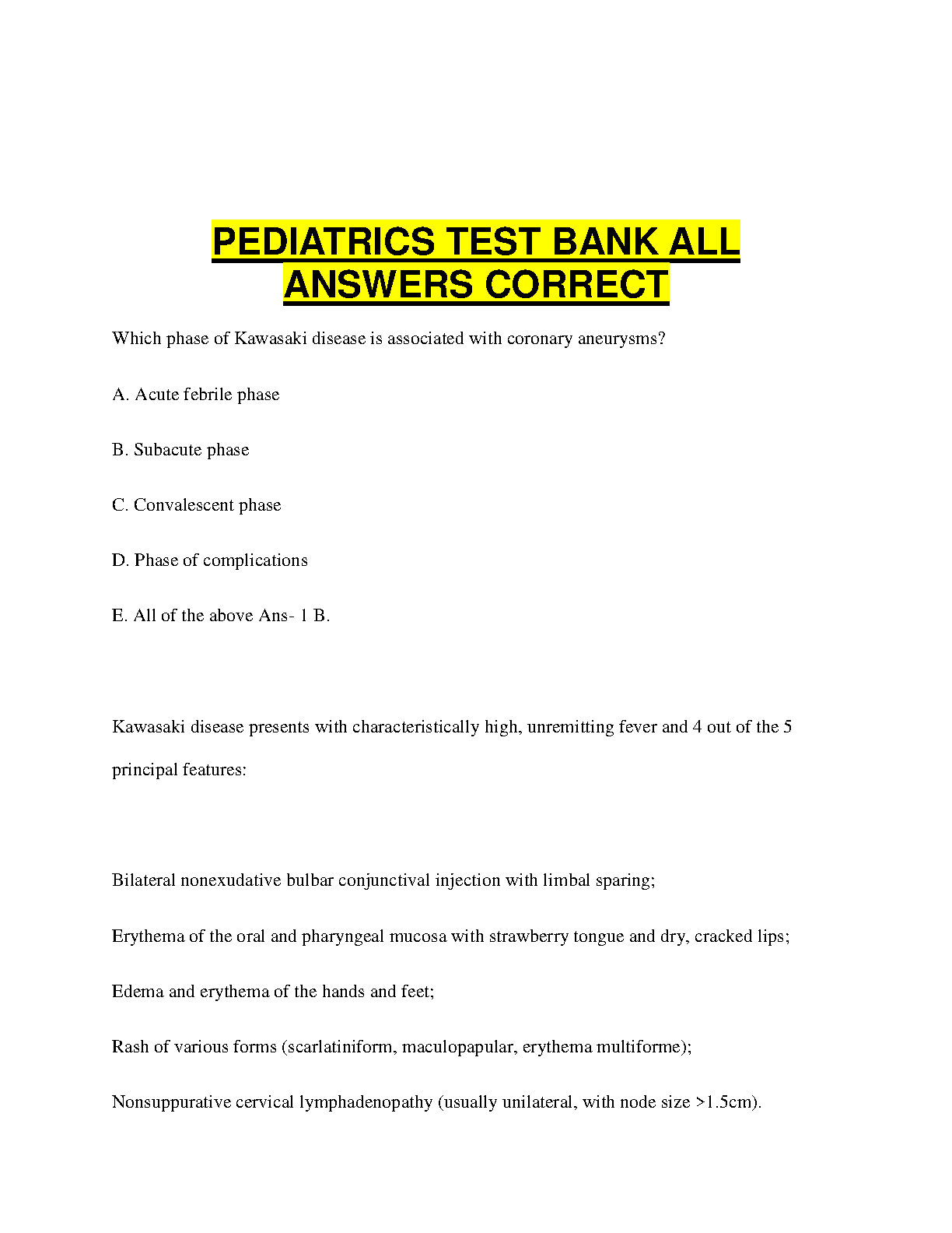 Pediatrics Test Bank All Answers Correct - 2024/2025 Edition - Ace Your Exams on the First Attempt