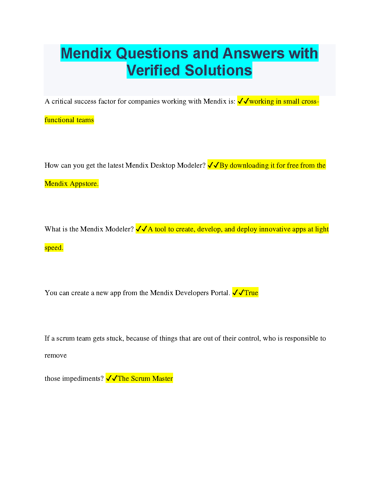 Mendix Questions and Answers with Verified Solutions: Ace your Mendix Exam on the First Attempt!