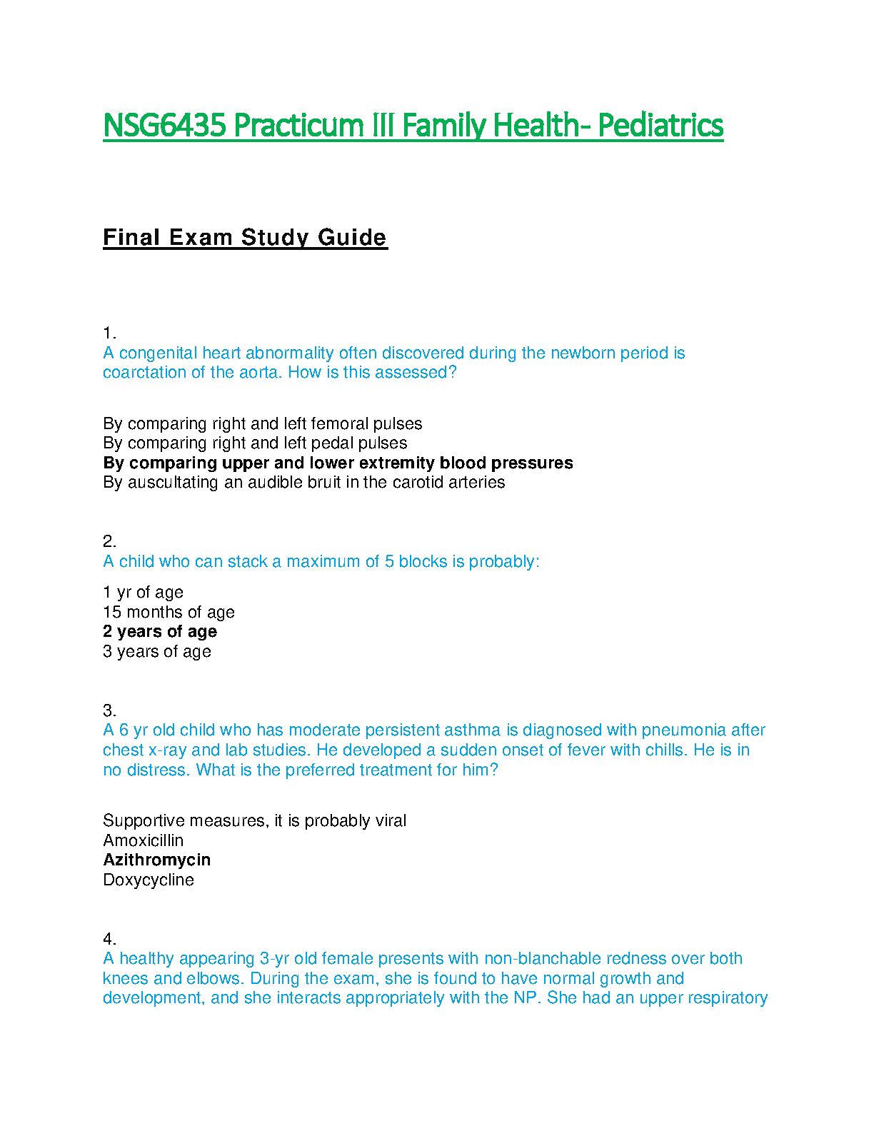 NSG6435 Practicum III Family Health - Pediatrics Final Exam Study Guide BRAND NEW!!. DOWNLOAD on www.hackedexams.com INSTANTLY.
