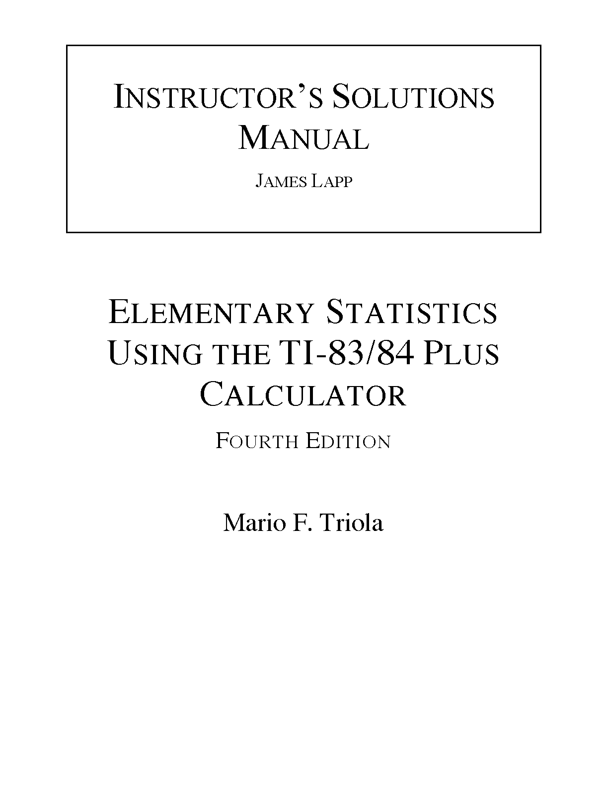 Instructor's Solutions Manual to Elementary Statistics Using the TI-83/84 Plus Calculator, 4th Edition by Mario F. Triola and James Lapp