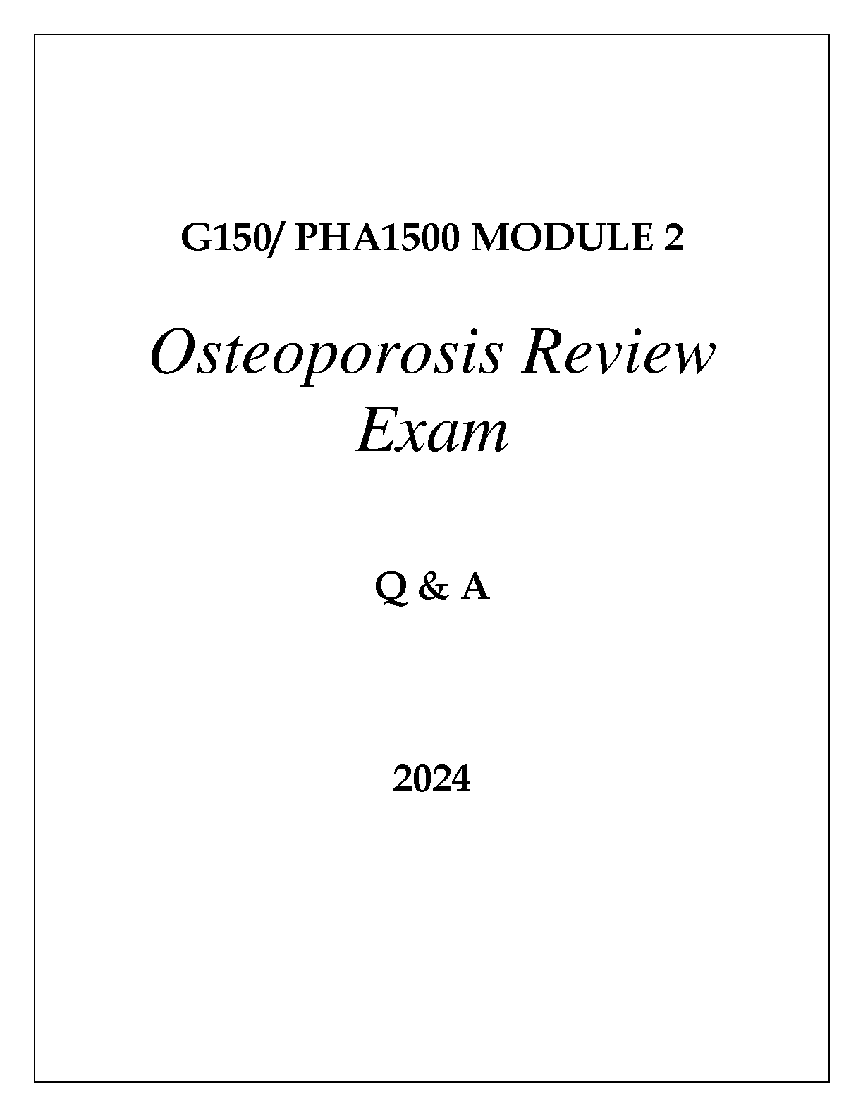 G150/PHA1500 Module 2 Osteoporosis Review Exam 2024 Q&A
