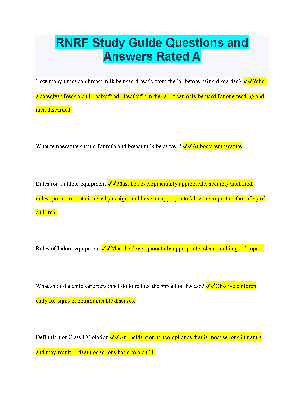 RN - Registered Nurse Study Guide Questions and Answers Rated A