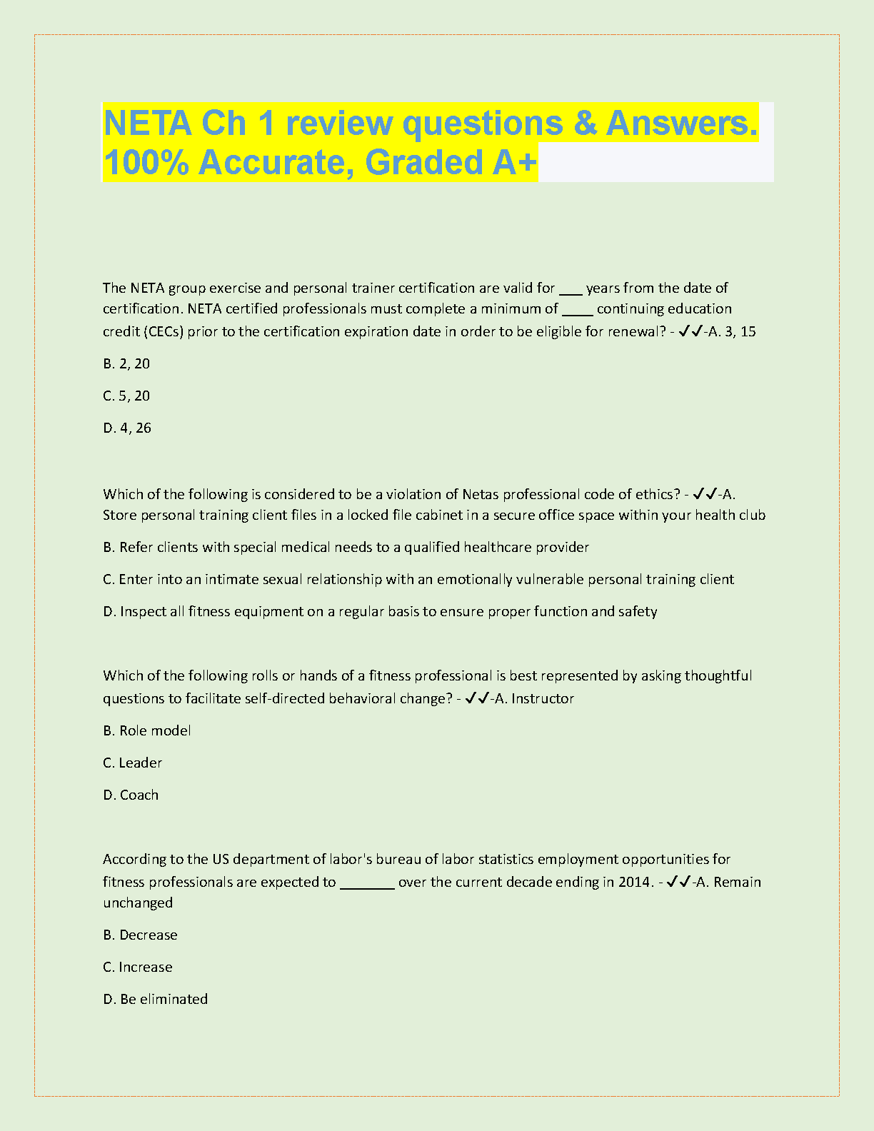 This resource is a complete guide for the NETA Ch 1 Exam covering all the important concepts and exam-style questions. It's the perfect tool to help you ace the exam and avoid any resits.