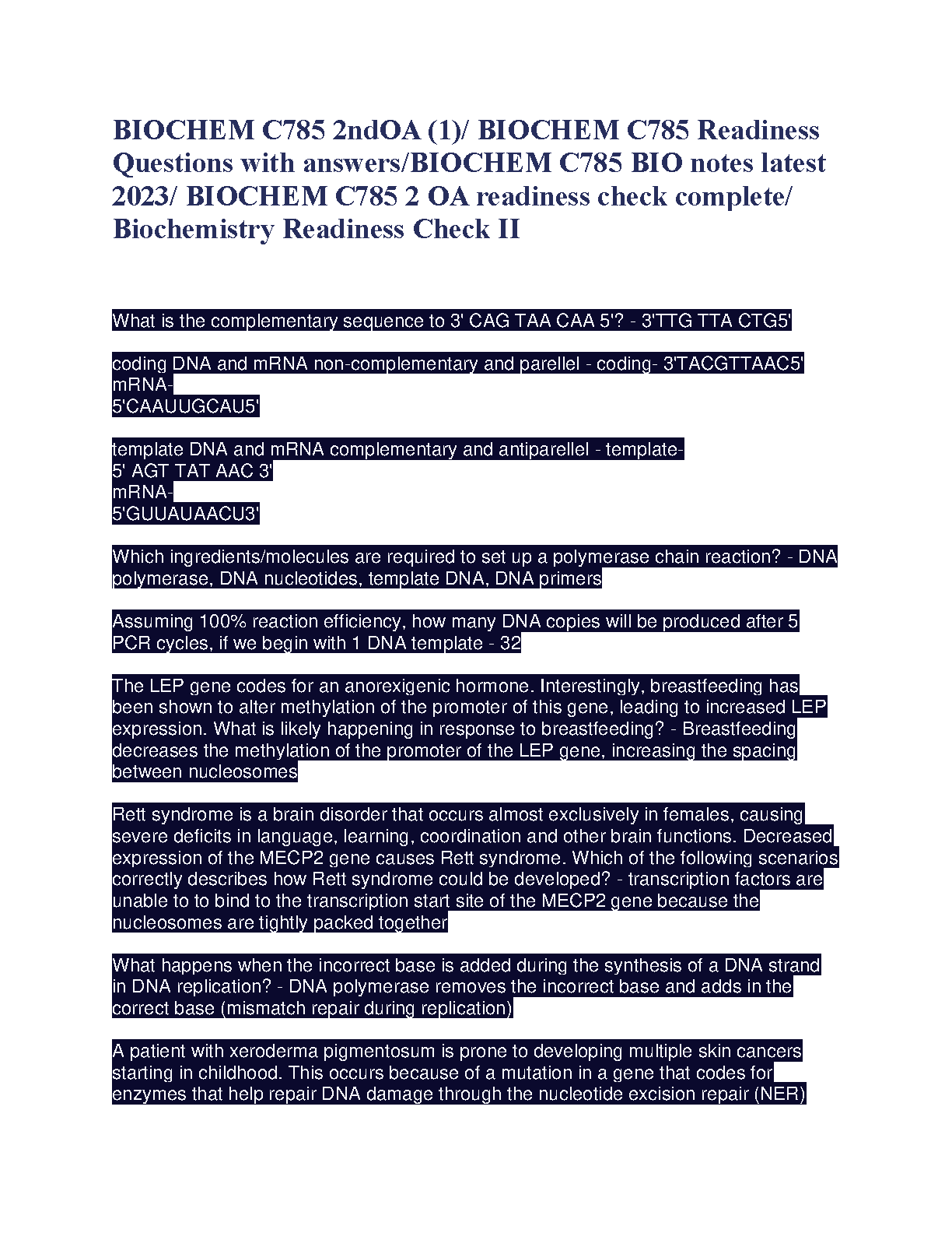 Biochemistry Readiness Check II: 2024/2025 Edition - Complete Guide to Ace Your Exam on the First Attempt