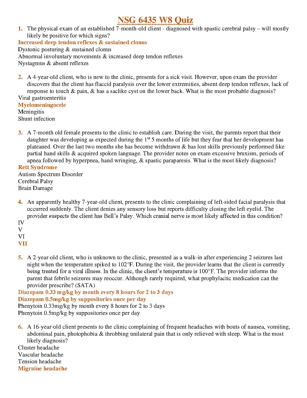 NSG 6435 W8 Quiz. WITH MOST RECENT SOLUTIONS. SCORED 100%V