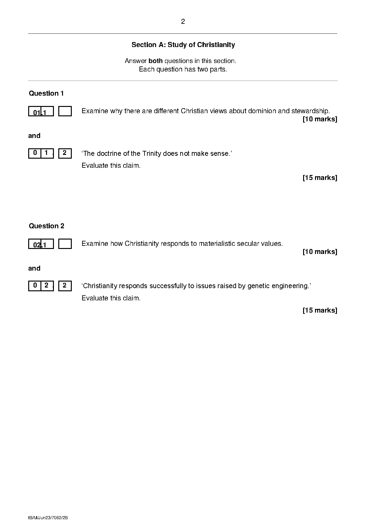 AQA A-Level Religious Studies 7062/2B Paper 2B Study of Religion and Dialogues: Christianity Question Paper & Mark Scheme (Merged) June 2023 Edition by Wendy and Adrian
