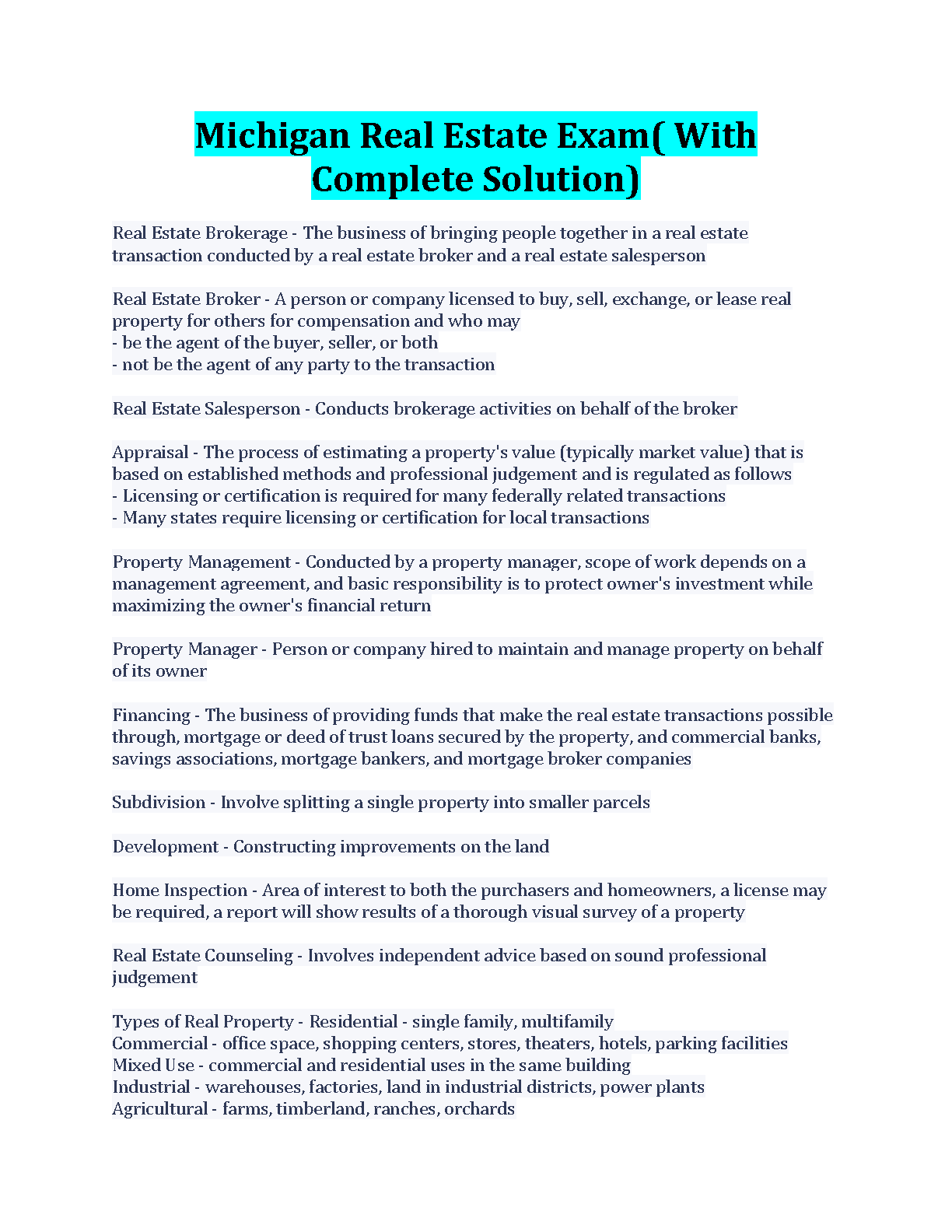 Michigan Real Estate Exam (With Complete Solution) - 2024/2025 Edition: Ultimate Guide to Passing on Your First Attempt