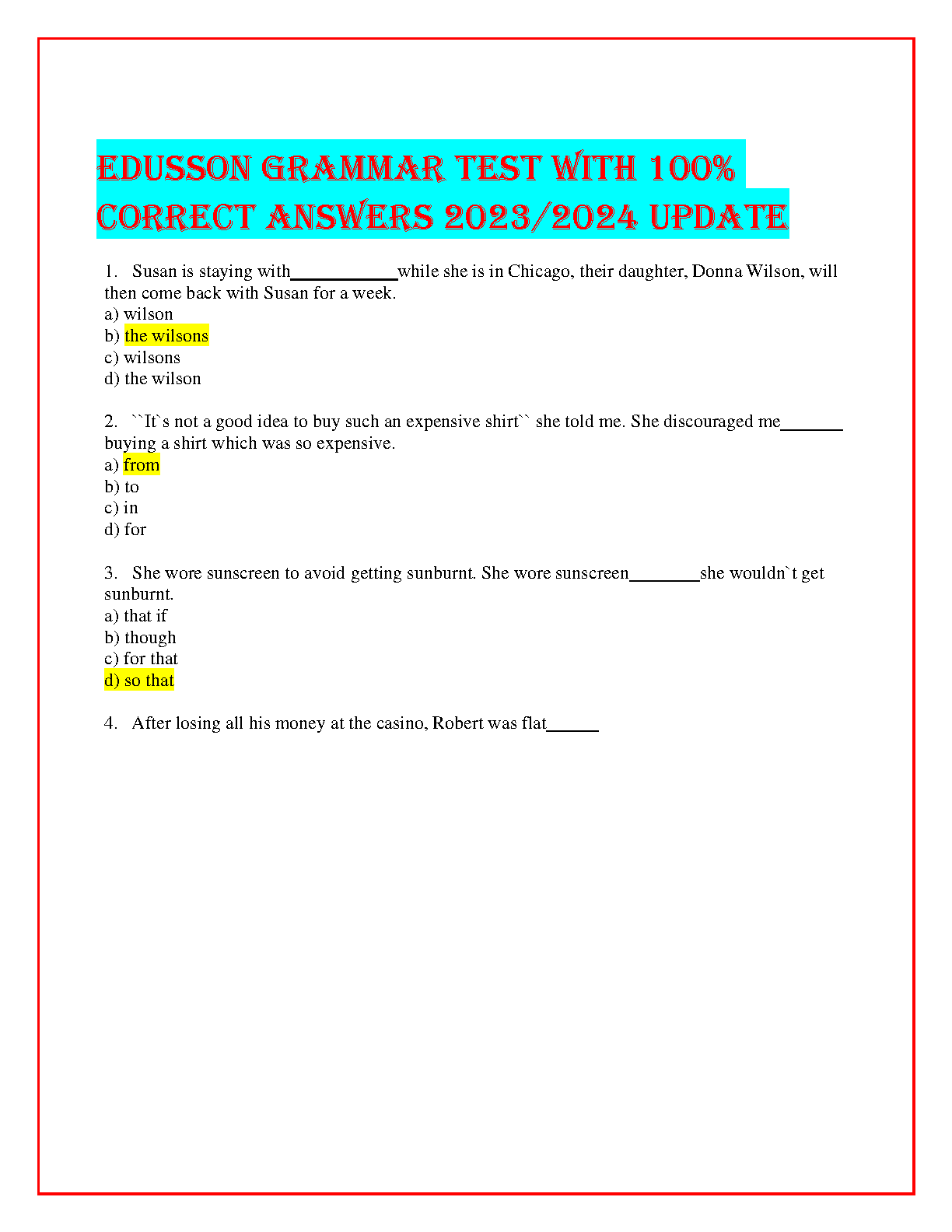 EDUSSON GRAMMAR TEST WITH 100% CORRECT ANSWERS 2023/2024 UPDATE