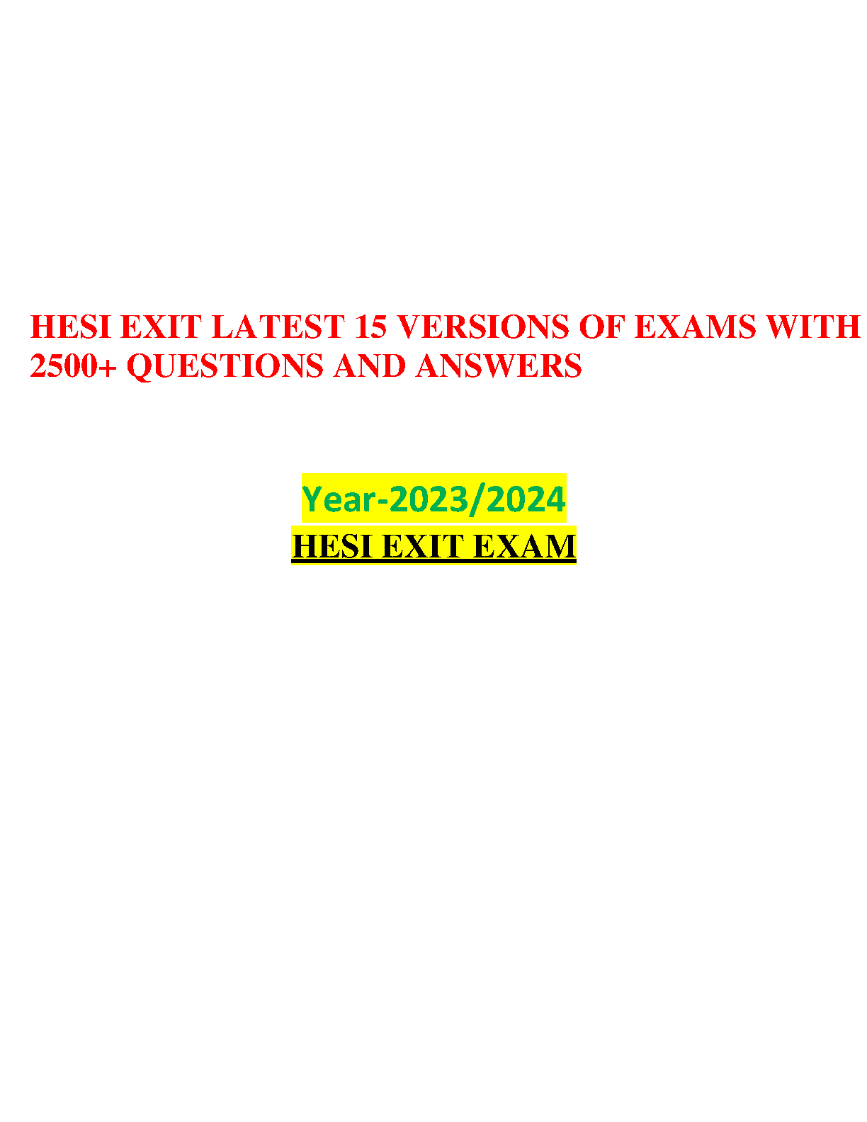 HESI Exit Exam Latest 15 Versions of Exams with 2500+ Questions and Answers for 2024/2025