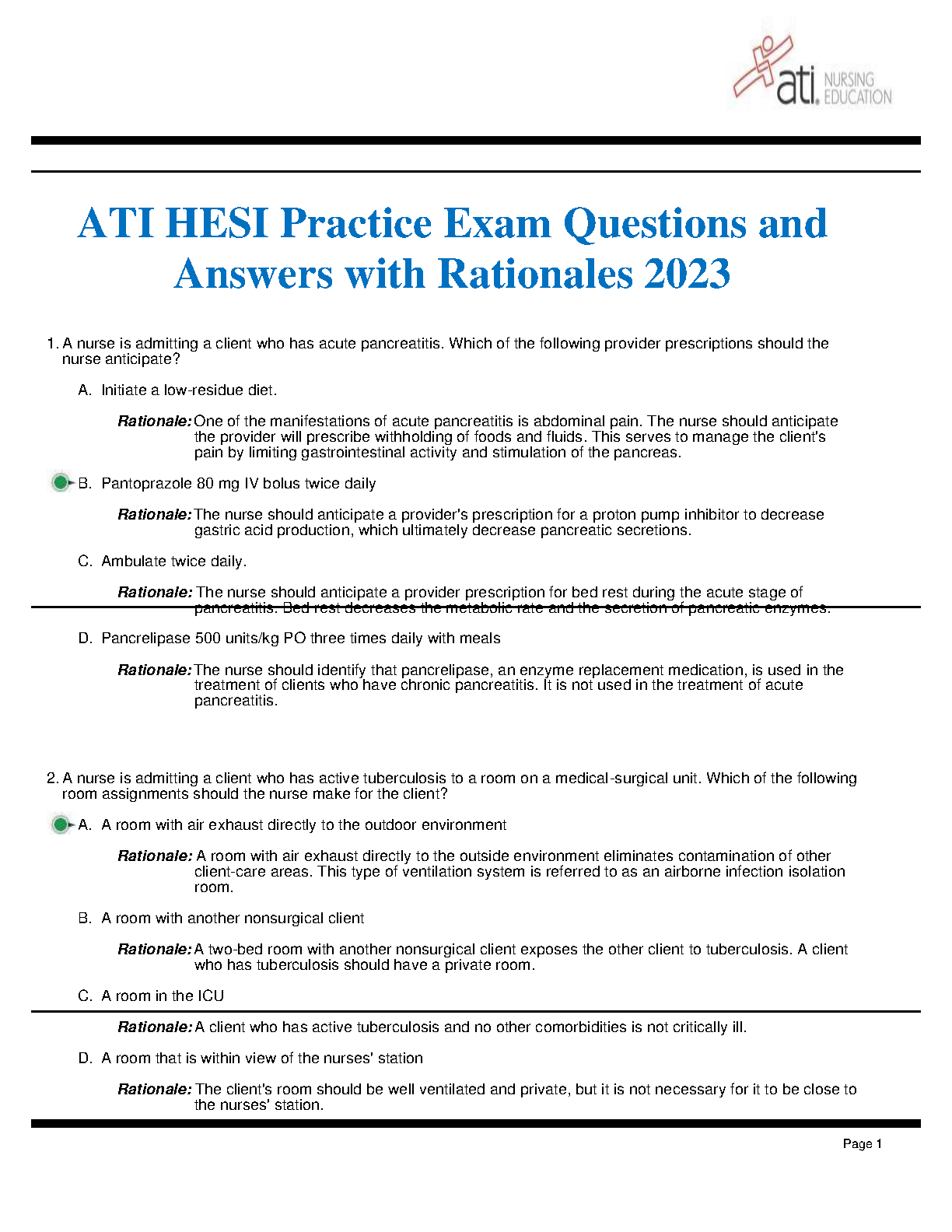 Get ready to ace your ATI HESI exam with this comprehensive practice question bank! Featuring a wide range of scenarios and detailed rationales, this resource provides a realistic simulation of the actual exam, helping you gain confidence and master critical nursing concepts.