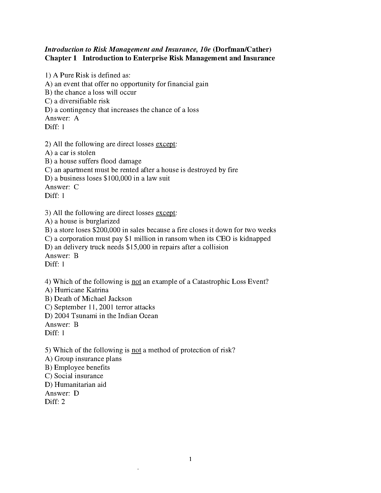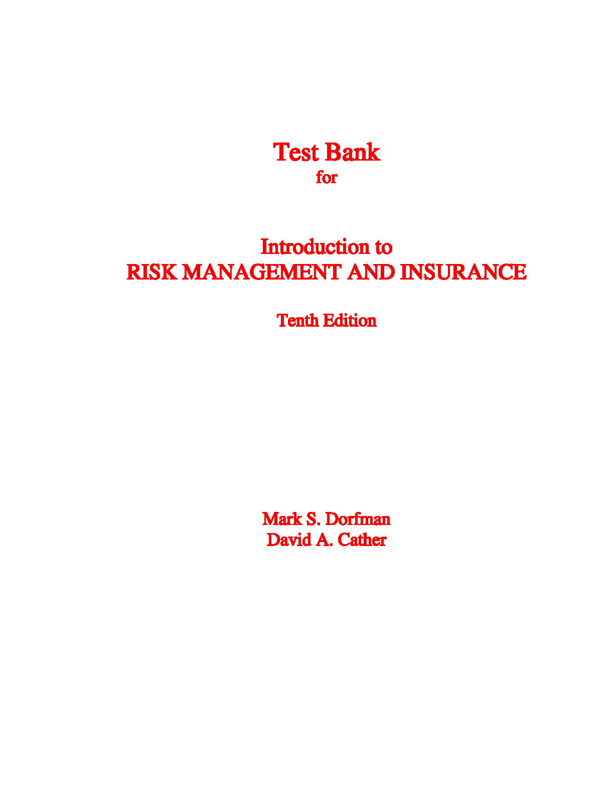 Test Bank for Introduction to Risk Management and Insurance 10th Edition by Mark S. Dorfman and David A. Cather
