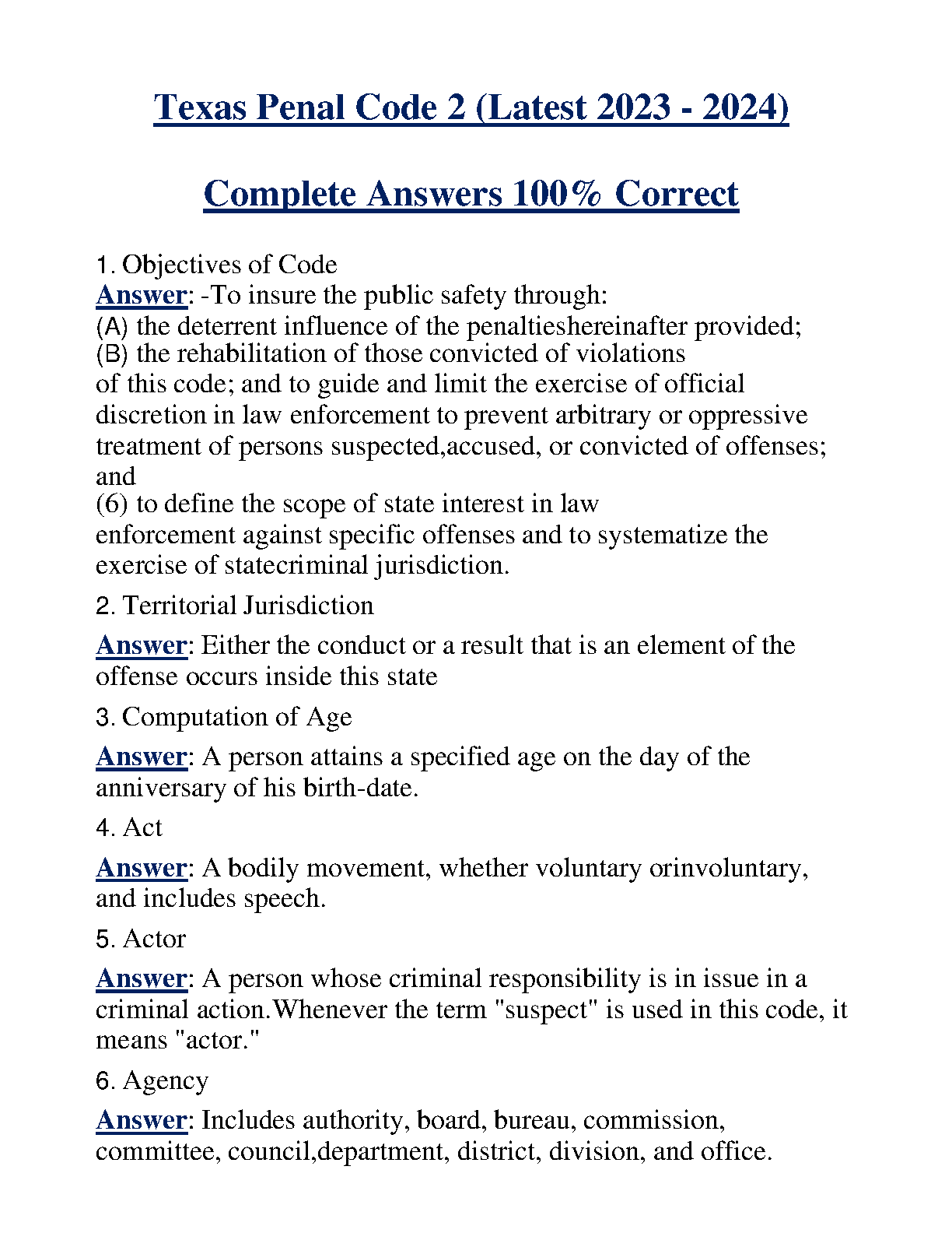Get the most comprehensive guide to Texas Penal Code 2, featuring complete answers for every question, ensuring you achieve a perfect score.