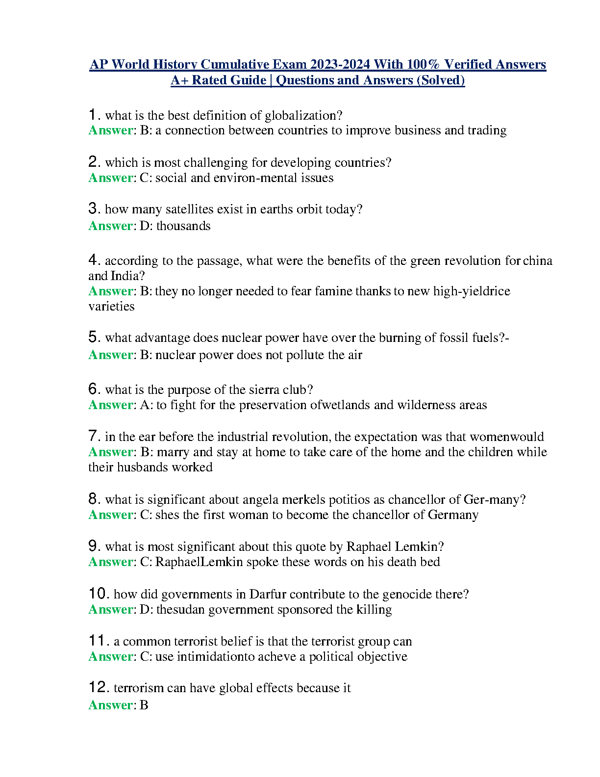 AP World History Cumulative Exam 2023-2024 With 100% Verified Answers A Rated Guide | Questions and Answers (Solved)