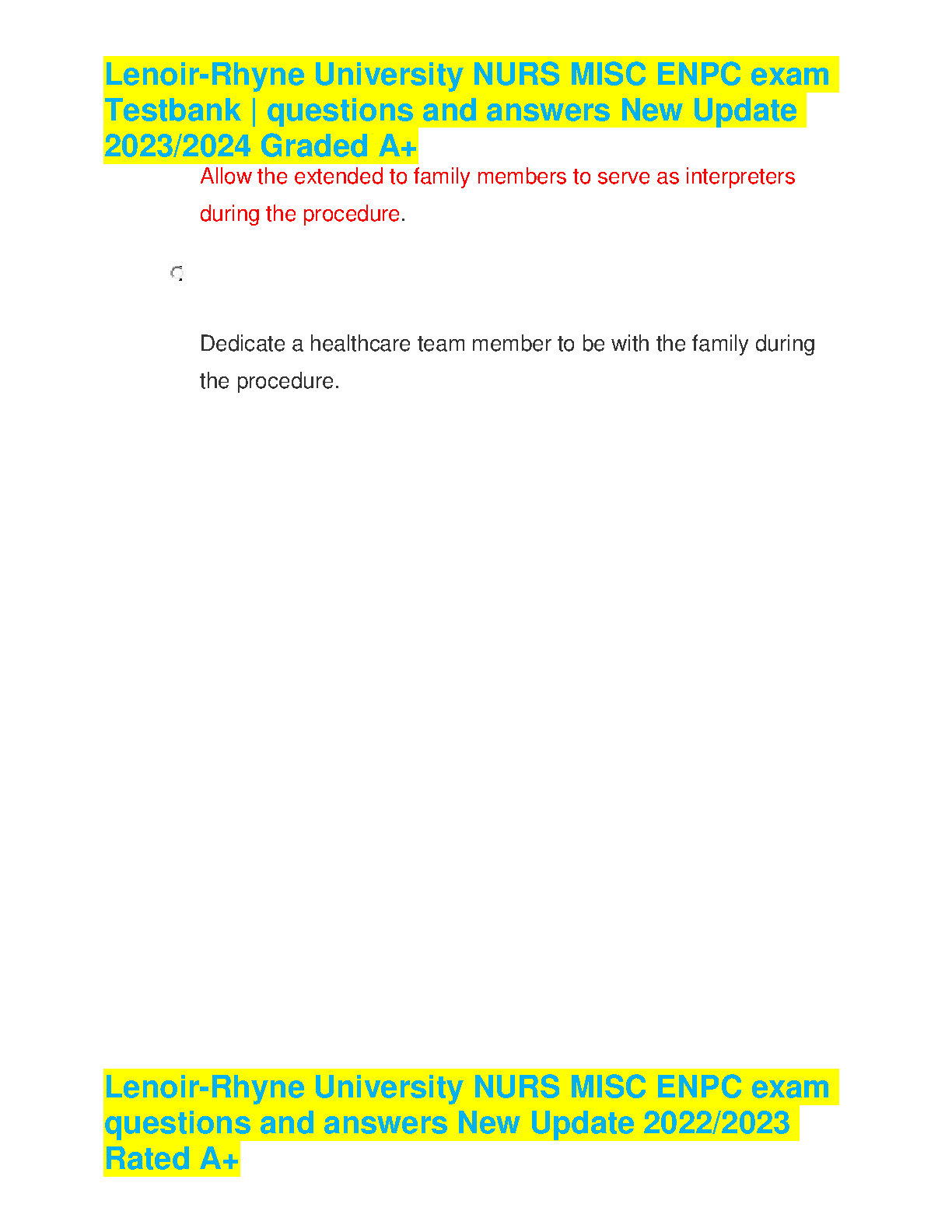 Ace your Lenoir-Rhyne University NURS MISC ENPC exam with this comprehensive testbank of questions and answers. This resource is designed to help you pass on your first attempt, ensuring you avoid any resits.