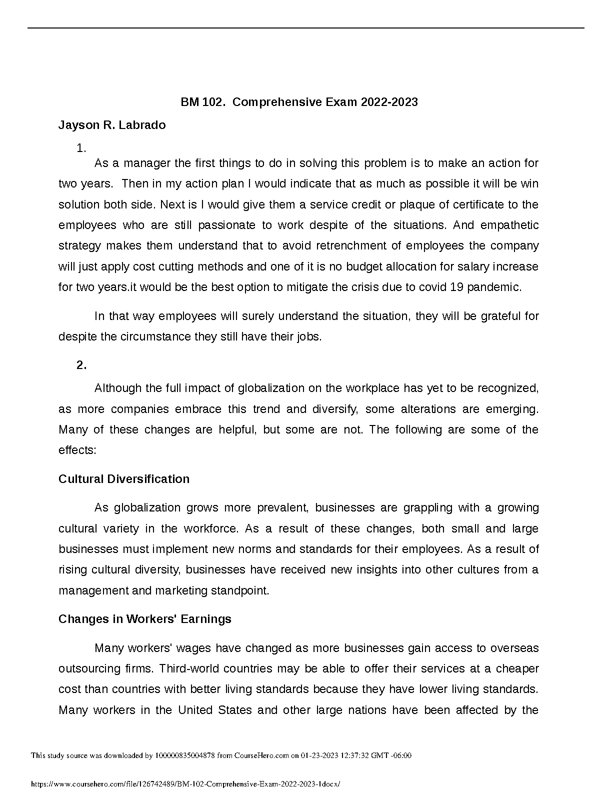 BM 102 Comprehensive Exam 2022-2023: A Study Guide for Success