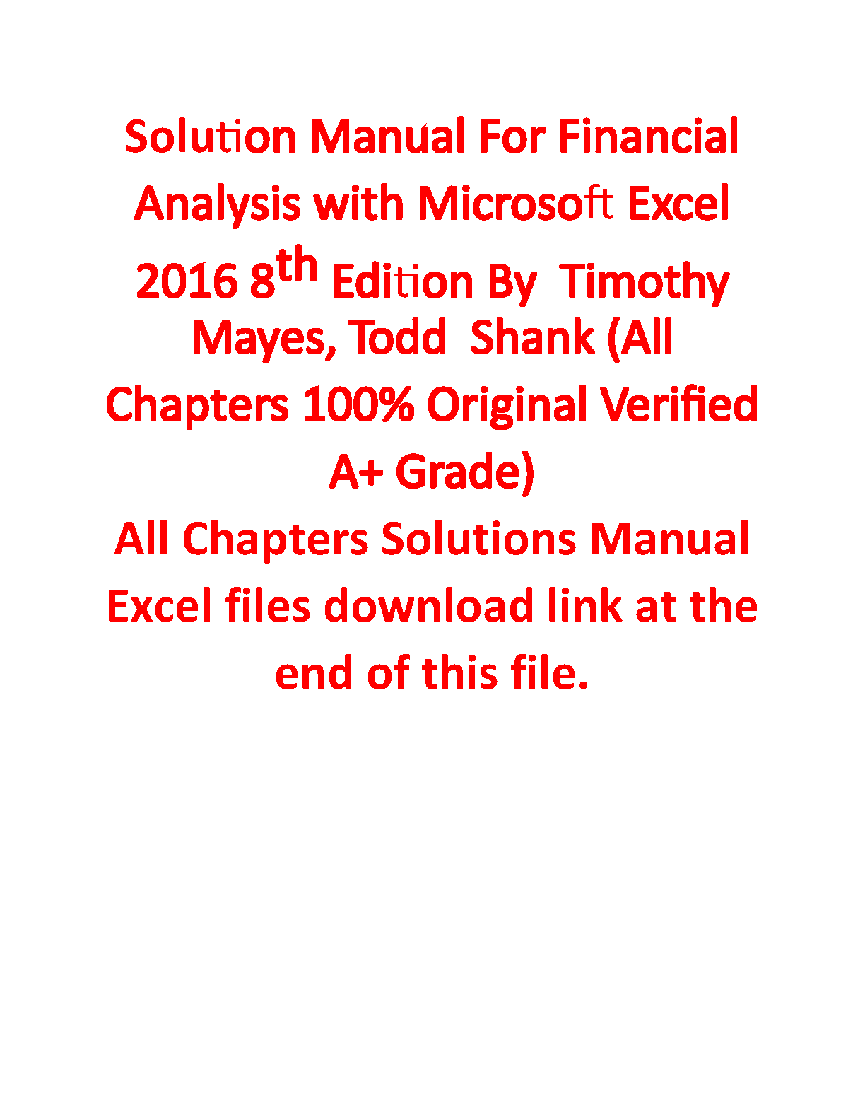 Financial Analysis with Microsoft Excel 8th Edition Solution Manual by Timothy Mayes, Todd Shank - Ace Your Exams in 2024-2025!