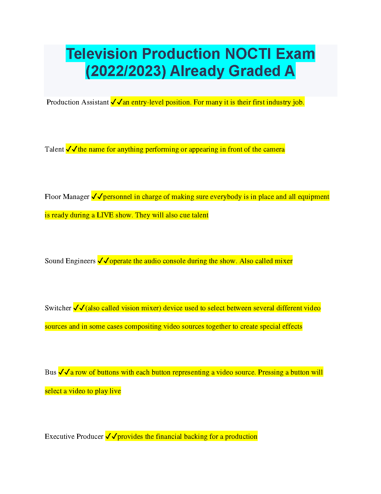 Television Production NOCTI Exam (2022/2023) - Get an A on your First Attempt