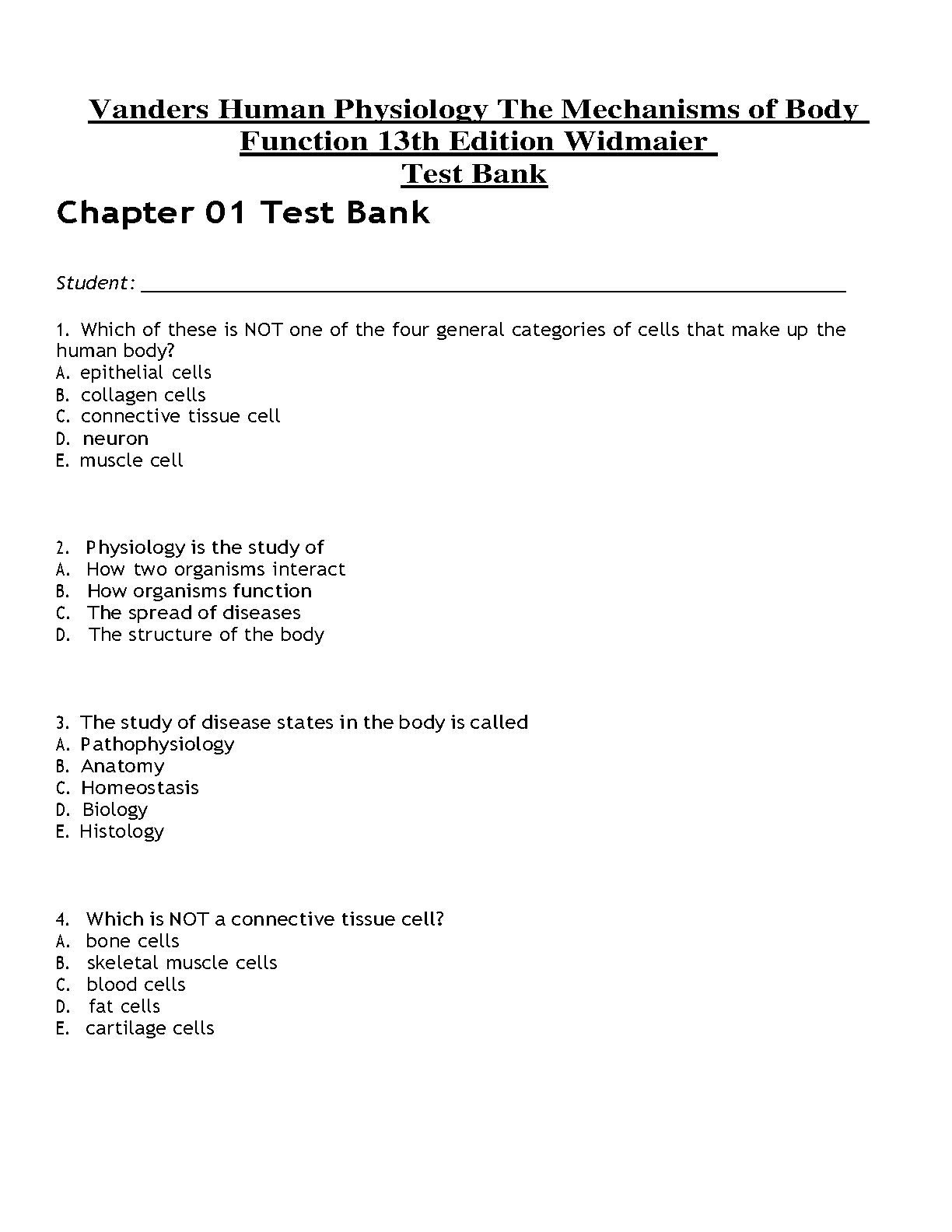 Get ready to ace your exams with the latest edition of Vander's Human Physiology: The Mechanisms of Body Function. This comprehensive test bank contains a rich collection of multiple-choice questions designed to help you master the concepts and principles presented in the textbook. Gain the confidence to excel in your physiology course.