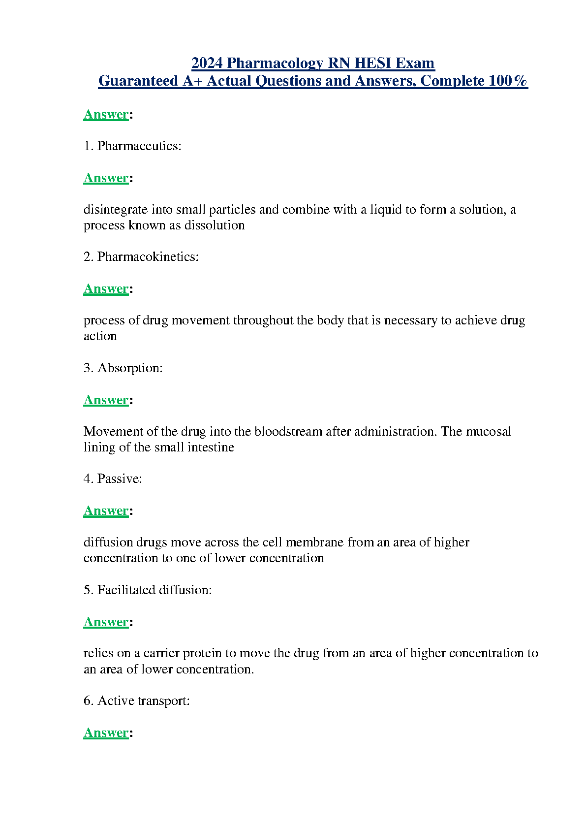 2024 Pharmacology RN HESI Exam - Guaranteed A+ Actual Questions and Answers, Complete 100%