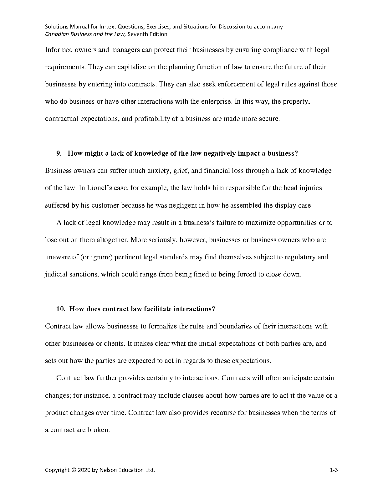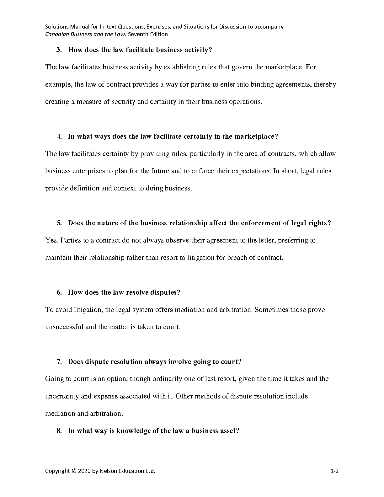 Canadian Business and the Law, Seventh Edition, Solutions Manual for In-text Questions, Exercises, and Situations for Discussion by Shannon O'Byrne