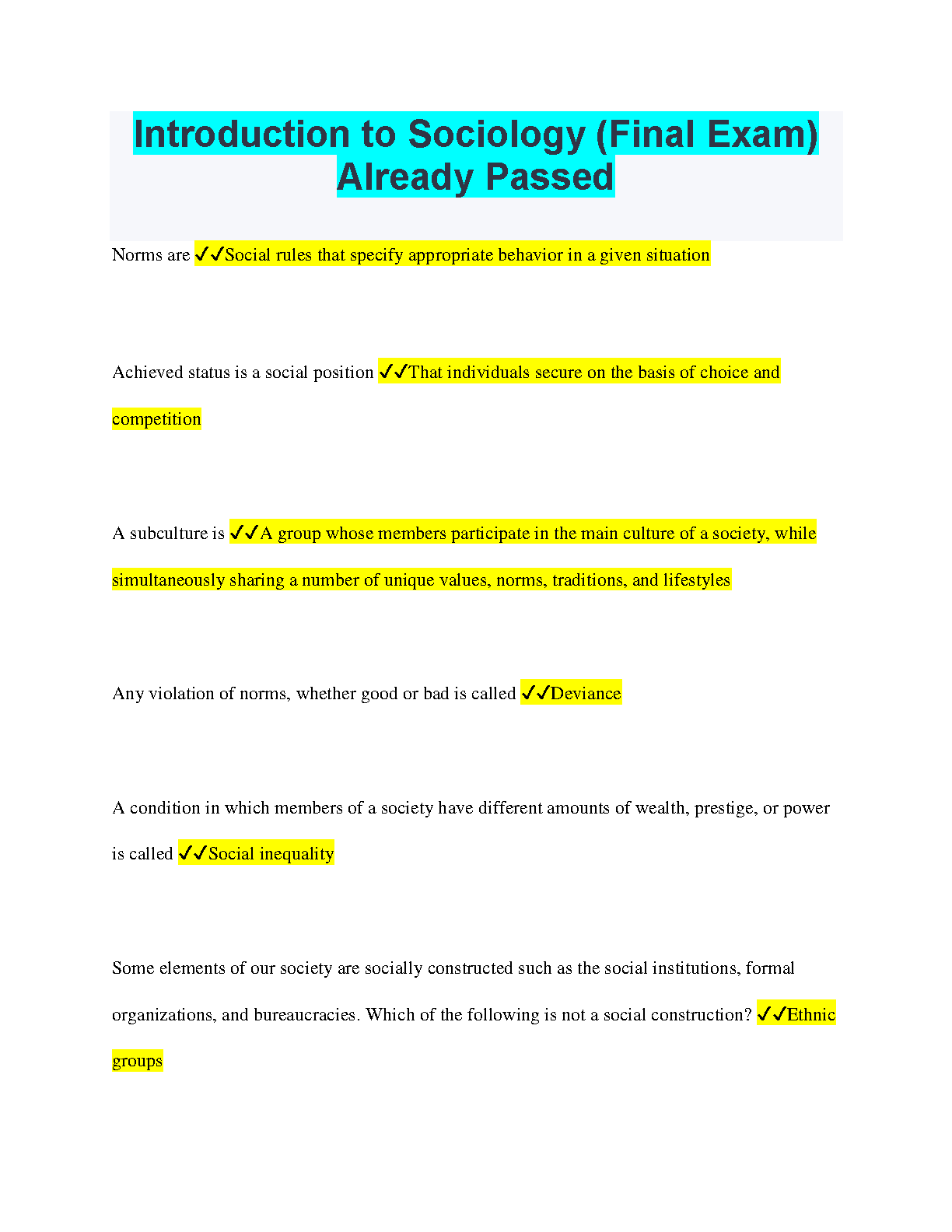 Introduction to Sociology (Final Exam) - Ace Your Exam with This Guide!