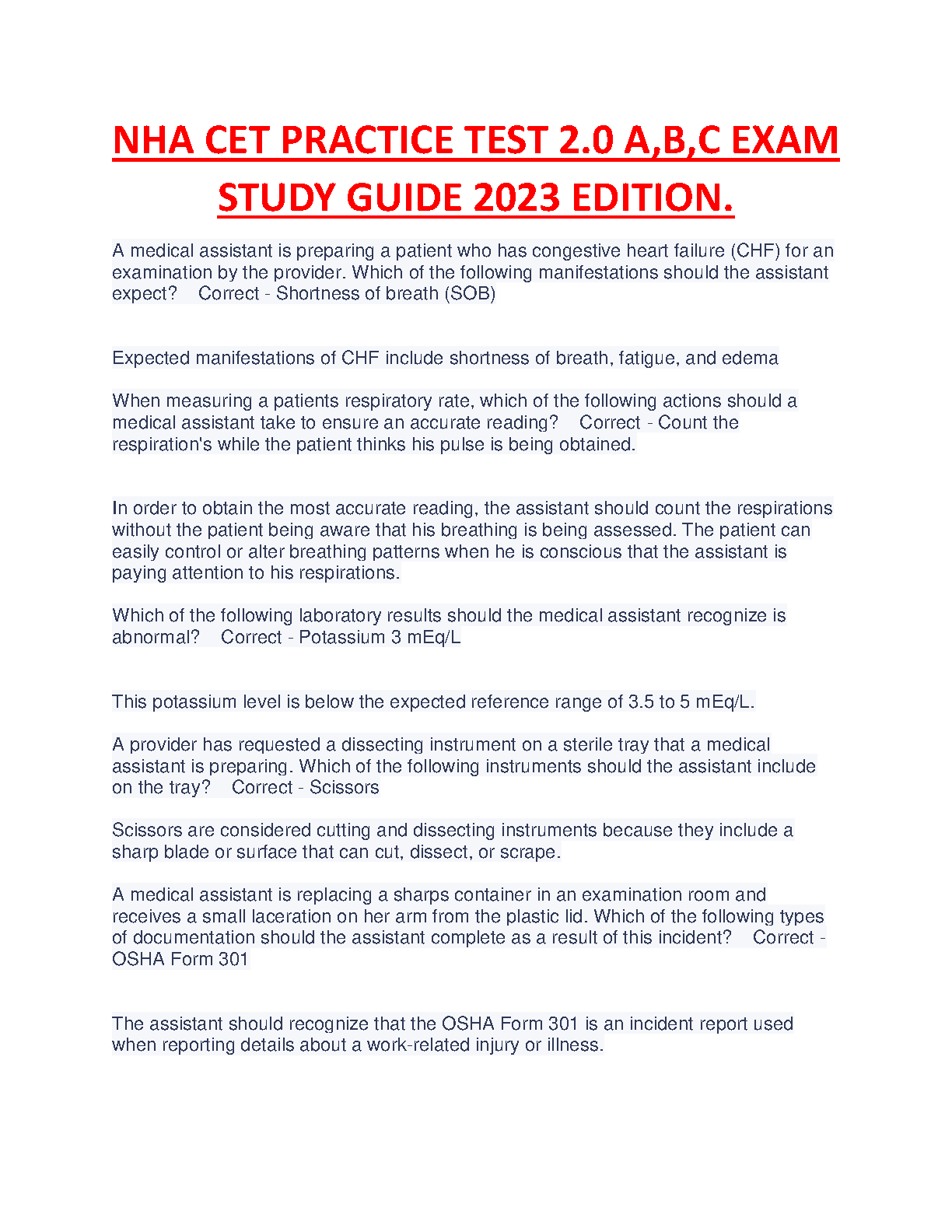 NHA CET Practice Test 2.0 A, B, C Exam Study Guide 2023 Edition. By [Author's name]