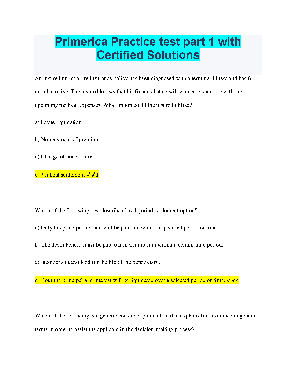 Ace your exams with this latest Primerica Practice Test Part 1 for the 2024-2025 academic year. Our meticulously crafted questions and detailed solutions will help you master the concepts and ensure you pass on your first attempt. Get the confidence you need to avoid resits.
