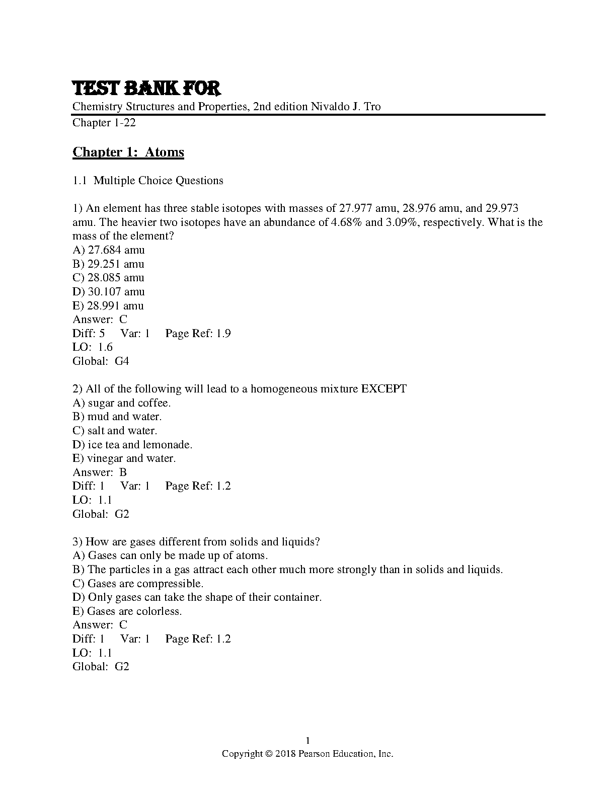 Test Bank for Chemistry Structures and Properties, 2nd Edition by Nivaldo J. Tro