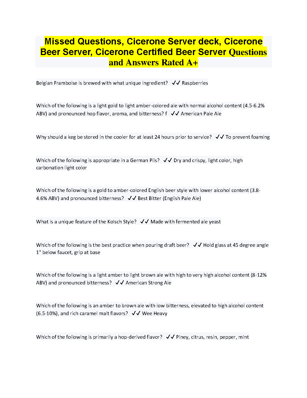 Cicerone Certified Beer Server Questions and Answers, 2024/2025 Edition: Pass the Exam on Your First Attempt!