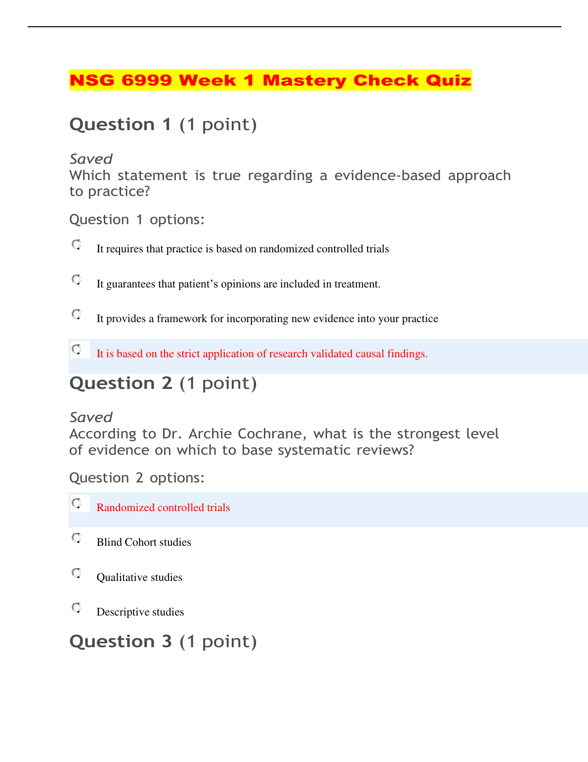 NSG 6999 Week 1 Mastery Check Quiz. COMPLETE SOLUTIONS GRADED A+. DOWNLOAD on www.Hackedexams.com INSTANTLY.