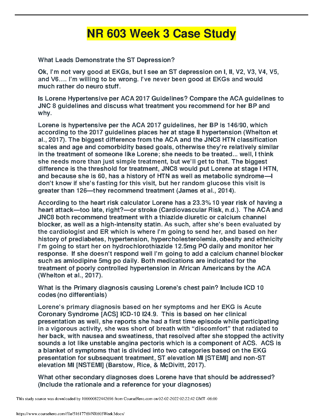 NR 603 Week 3 Case Study - Lorene's Hypertensive Case, 2024-2025 Edition: Pass Exams on First Attempt