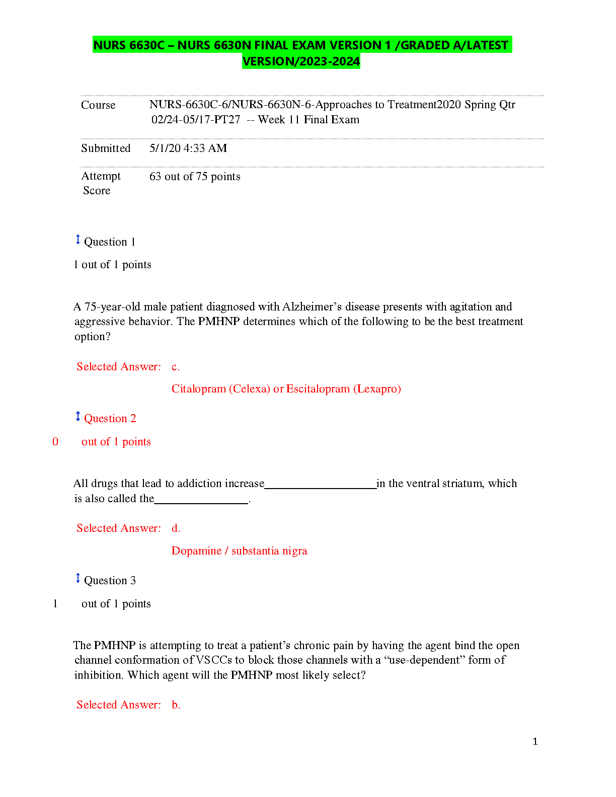 NURS 6630C- NURS 6630N Final Exam Version 1 Graded A/Latest Version/2023-2024. This comprehensive exam is designed to help you master the key concepts and skills covered in the course, ensuring a high score on your first attempt.
