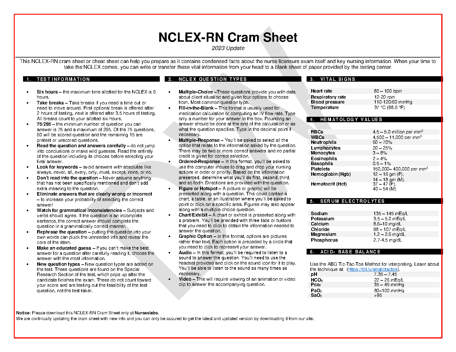 NCLEX-RN Cram Sheet 2023 Update: Your Guide to Passing the NCLEX-RN Exam on the First Attempt