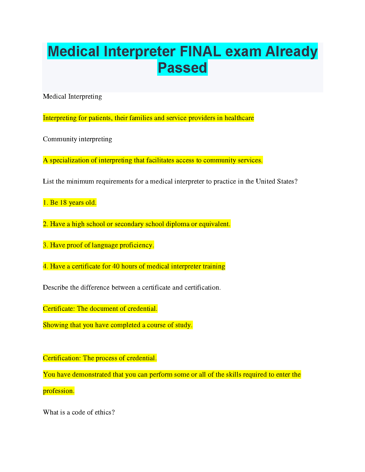 Medical Interpreter Final Exam Study Guide - Ace Your Exam on the First Attempt!