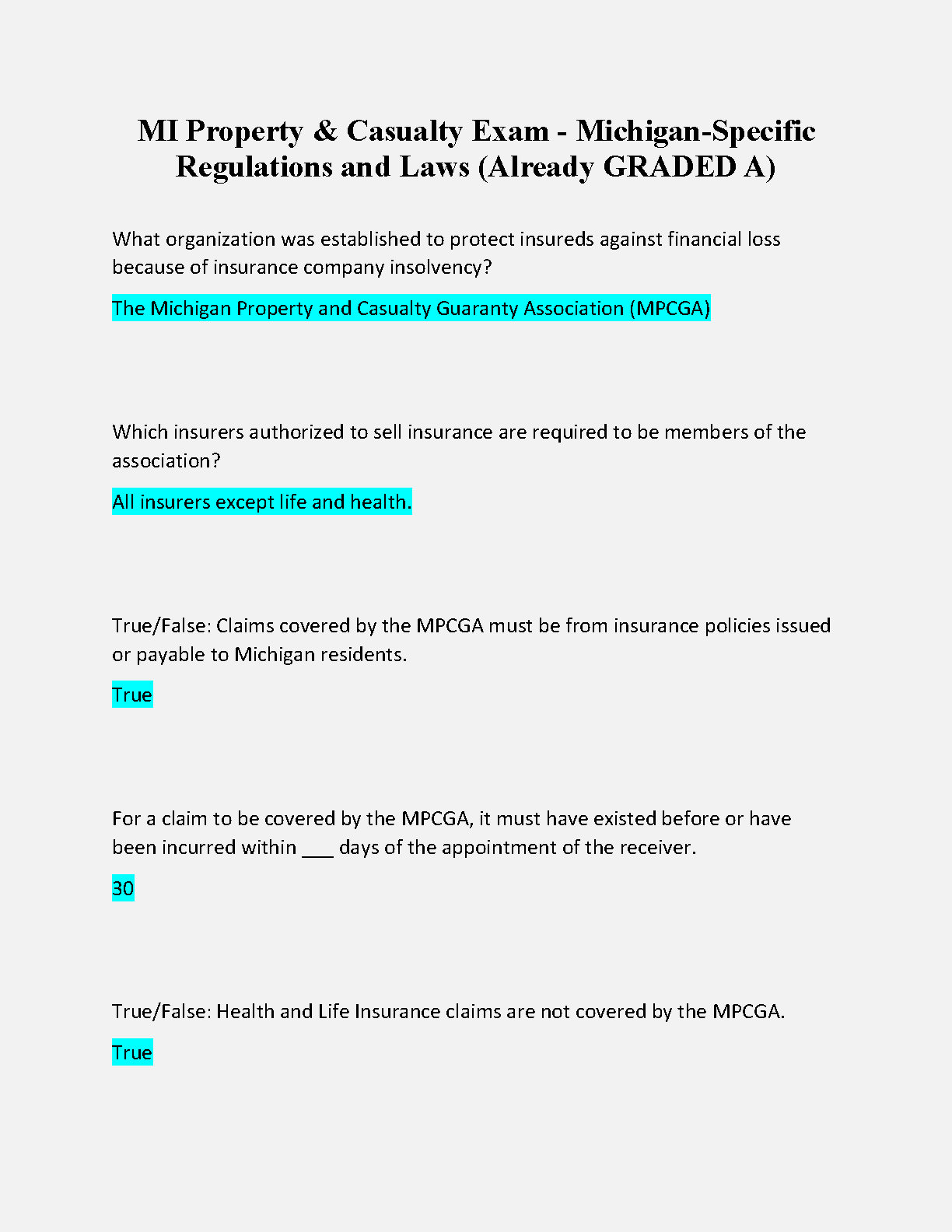 MI Property & Casualty Exam - Michigan-Specific Regulations and Laws (Already GRADED A) 2024-2025