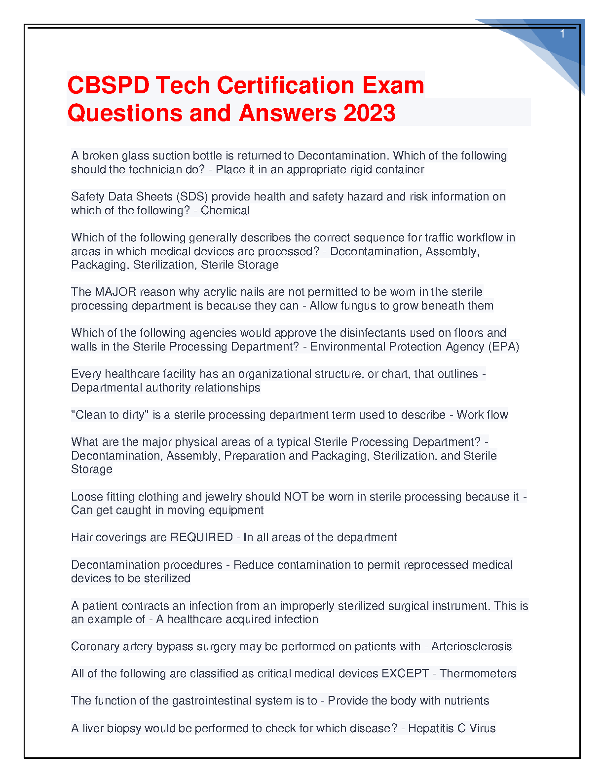 Prepare for your CBSPD Tech Certification Exam with this comprehensive study guide. This resource covers all key areas, including decontamination, sterilization, and more.