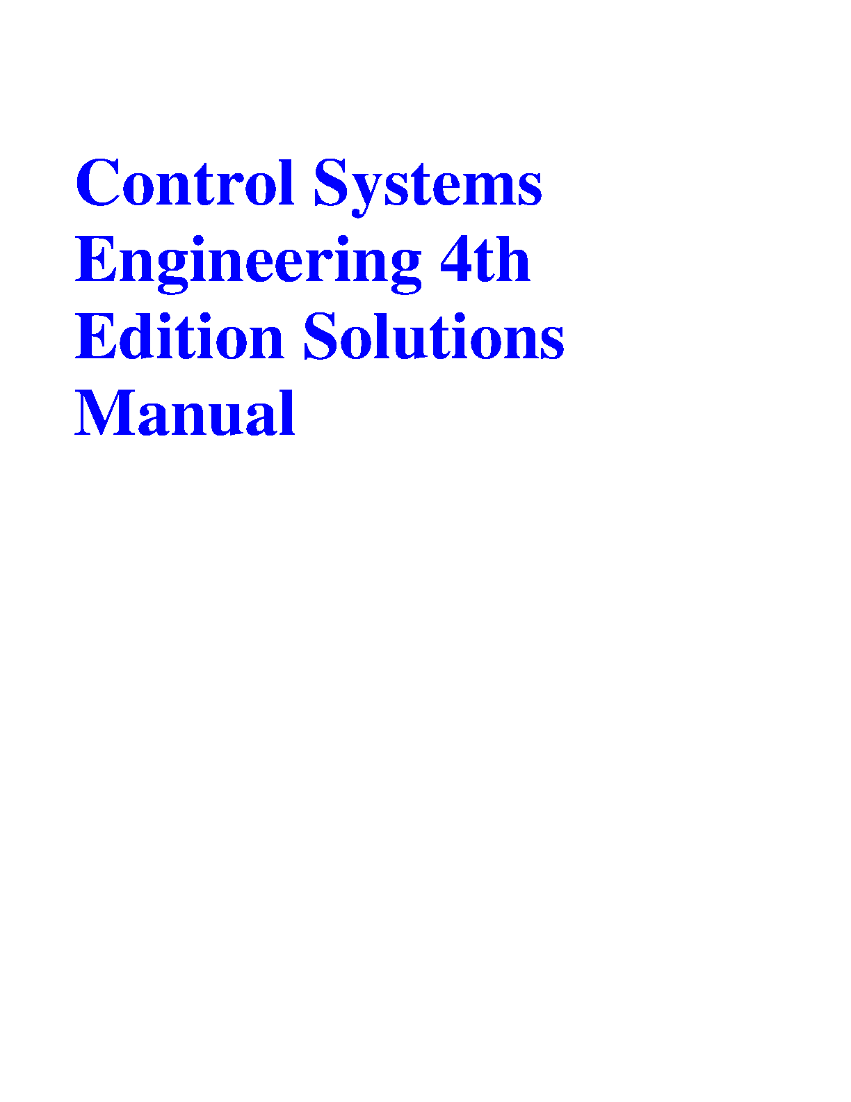 Ace your Control Systems Engineering course with this comprehensive solutions manual for the 4th edition of Norman S. Nise's textbook. This manual provides detailed solutions to all practice problems and examples in the textbook, helping you understand the concepts and build a strong foundation in control systems theory and applications.