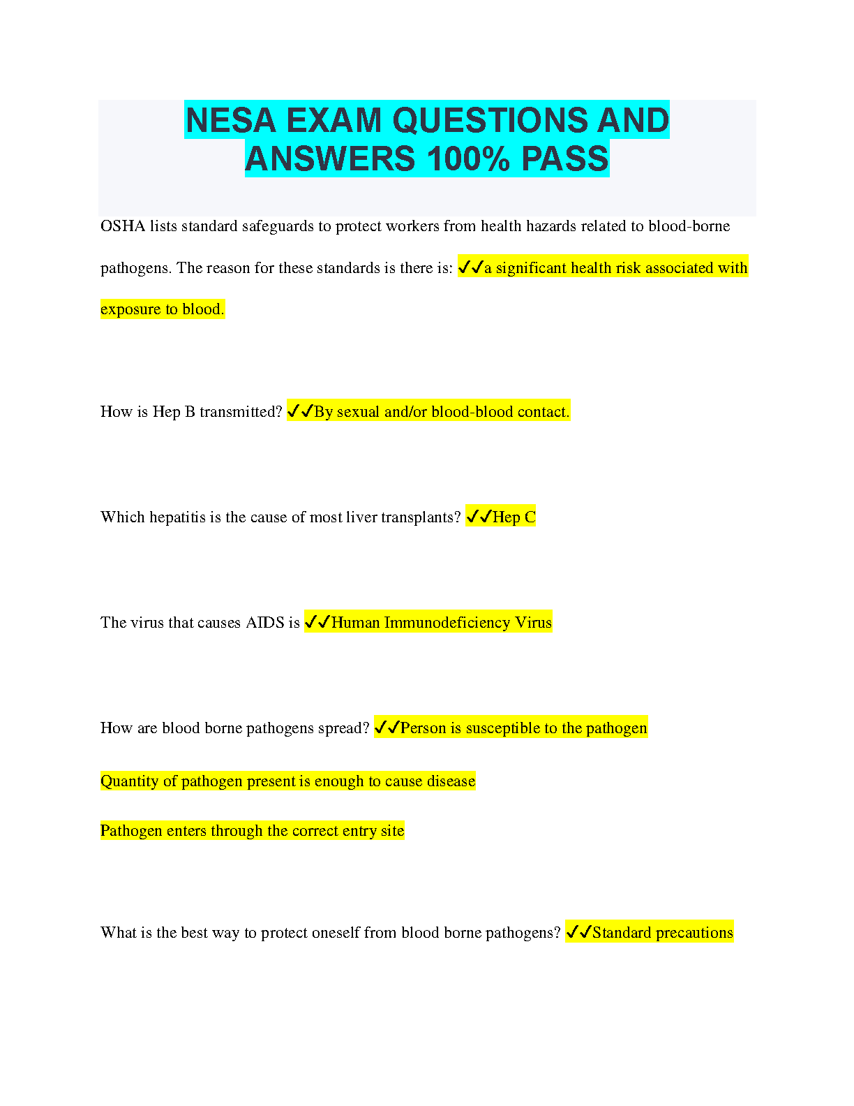 Ace your NESA exam with our comprehensive study guide. This resource includes practice questions and answers, covering crucial topics like bloodborne pathogens, hepatitis, and AIDS. Boost your confidence and ensure a passing score on your first attempt.