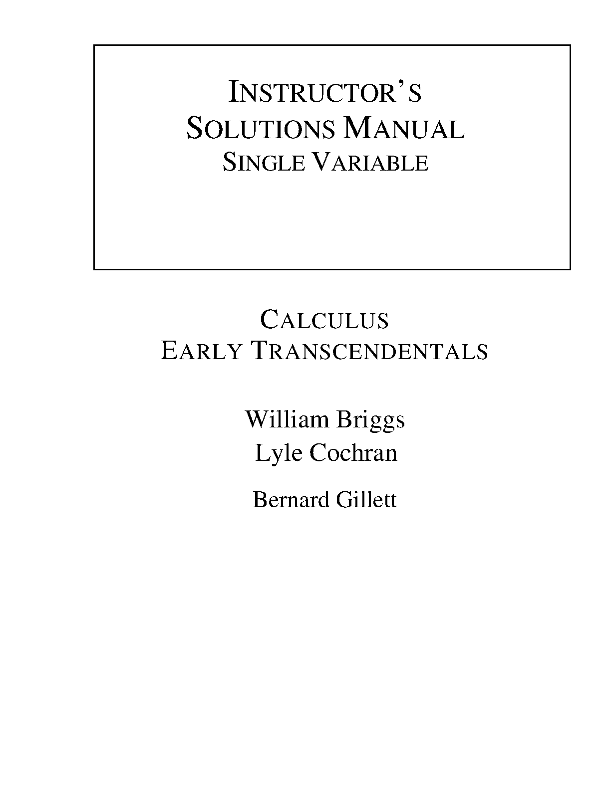 Calculus: Early Transcendentals Instructor's Solutions Manual, 10th Edition by William Briggs, Lyle Cochran, and Bernard Gillett