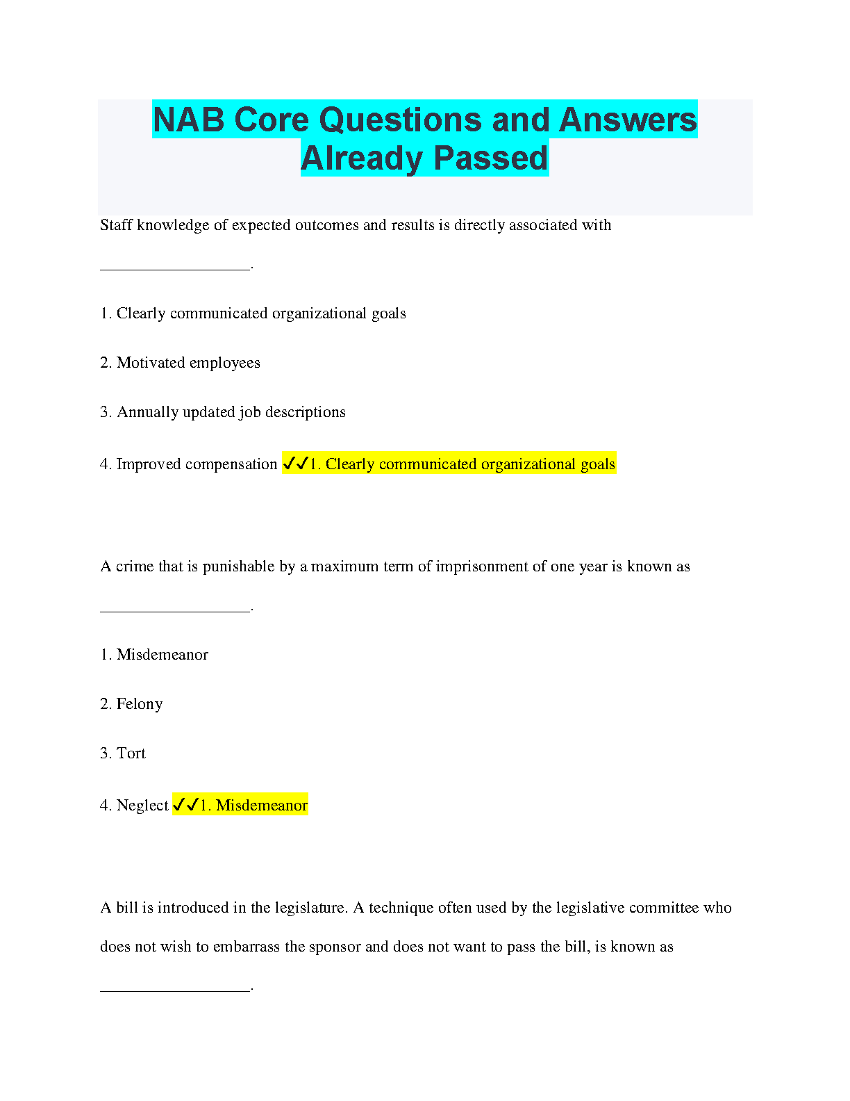 NAB Core Questions and Answers: Ace Your Exams on the First Attempt - 2024/2025 Edition