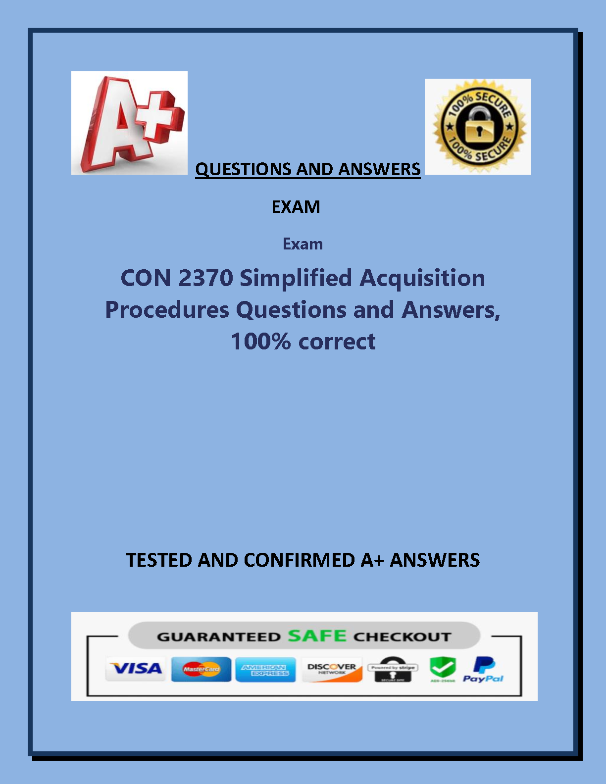 Ace your CON 2370 Exam on the first attempt with this comprehensive study guide. Get access to tested and confirmed answers to all the key concepts in Simplified Acquisition Procedures, ensuring exam success and avoiding resits.