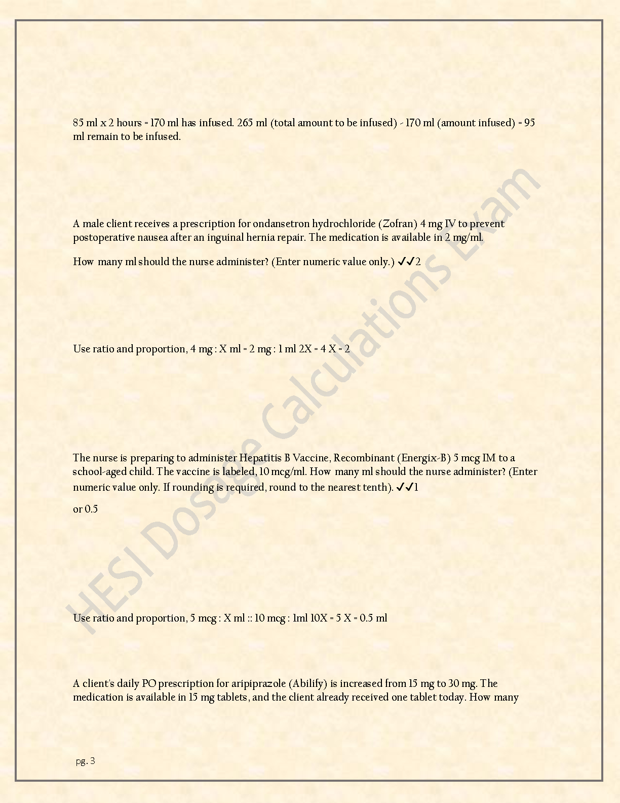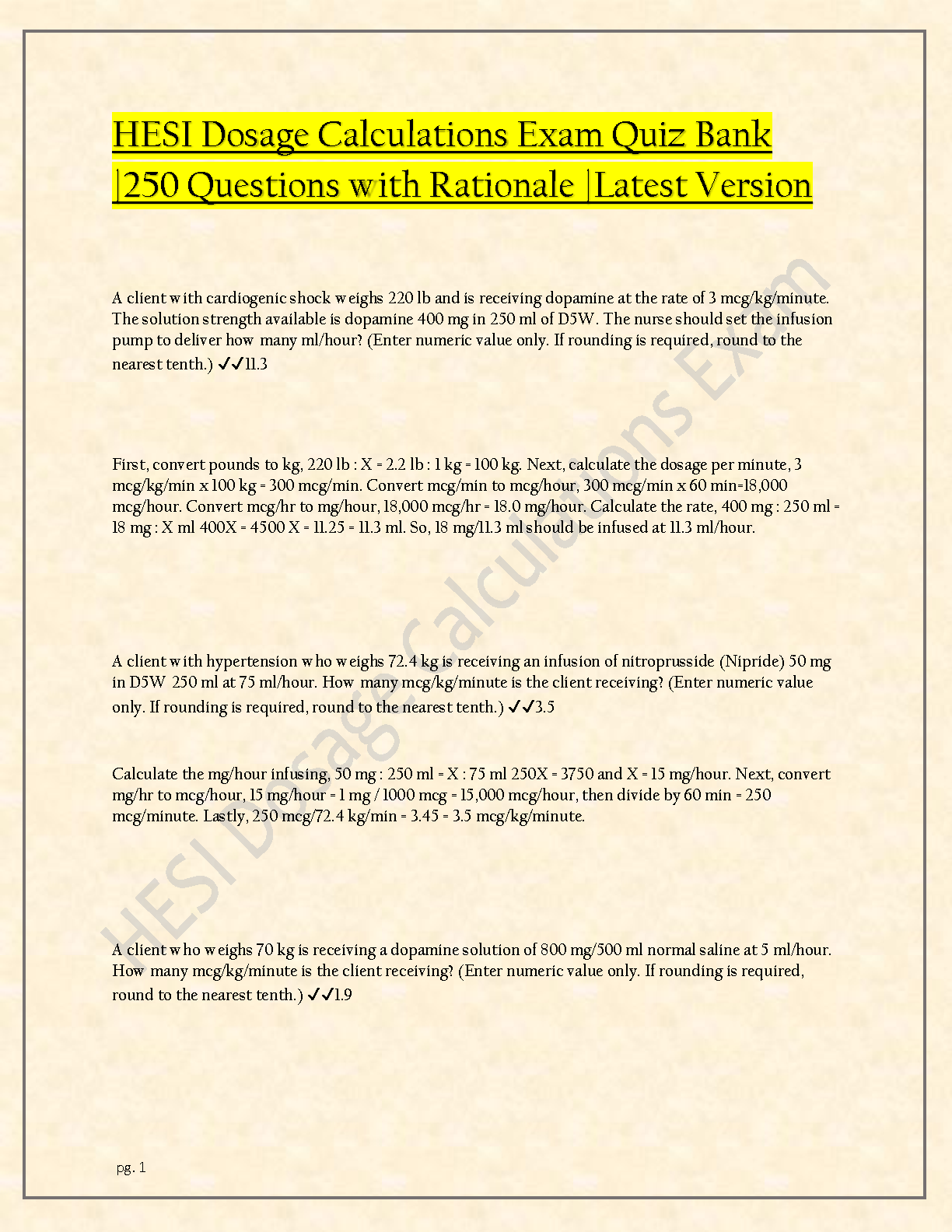 HESI Dosage Calculations Exam Quiz Bank 250 Questions with Rationale Latest Version - Practice Questions for Success