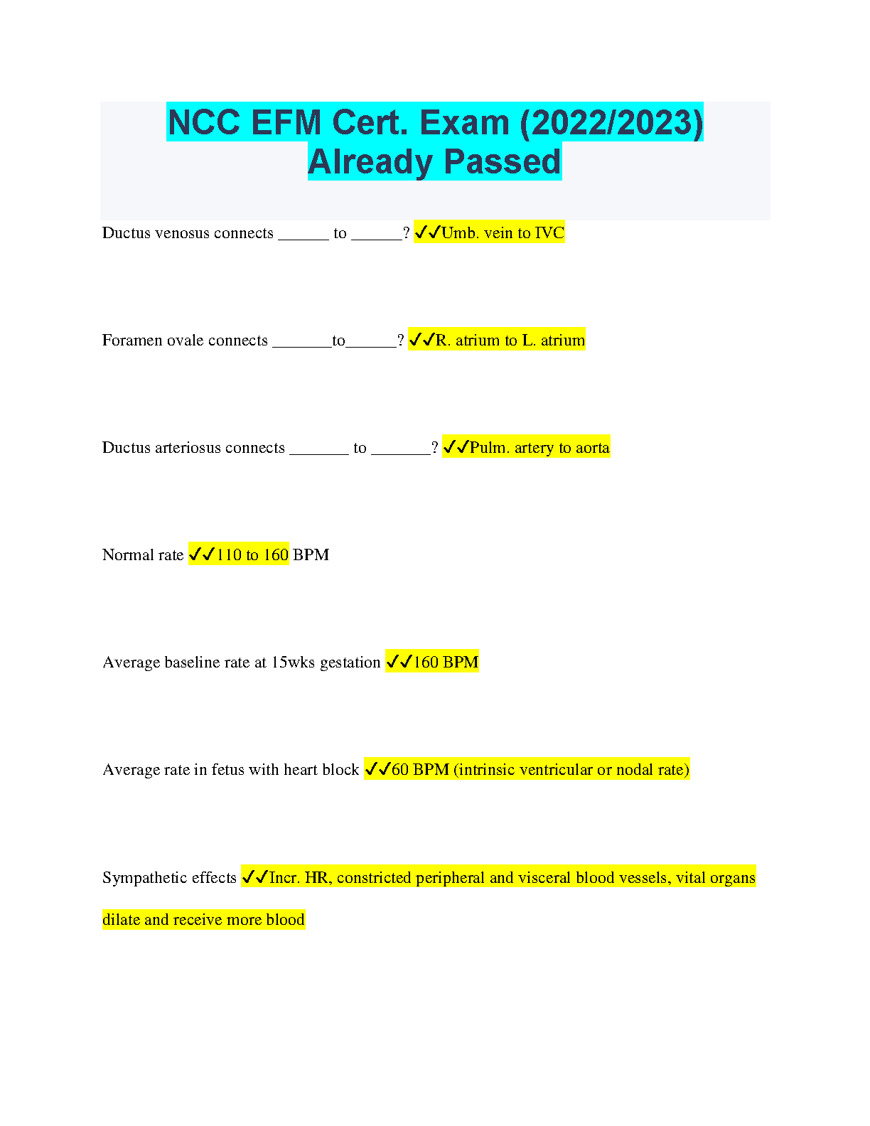 This comprehensive study guide for the NCC EFM Certification Exam (2022/2023) is designed to help you master the essential concepts and skills needed to pass your exam on the first attempt. It covers key topics such as fetal heart rate patterns, fetal monitoring, and other important information that you need to know to succeed.