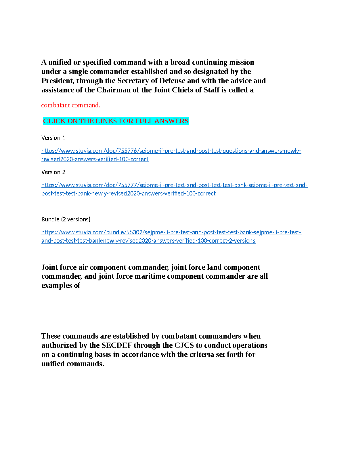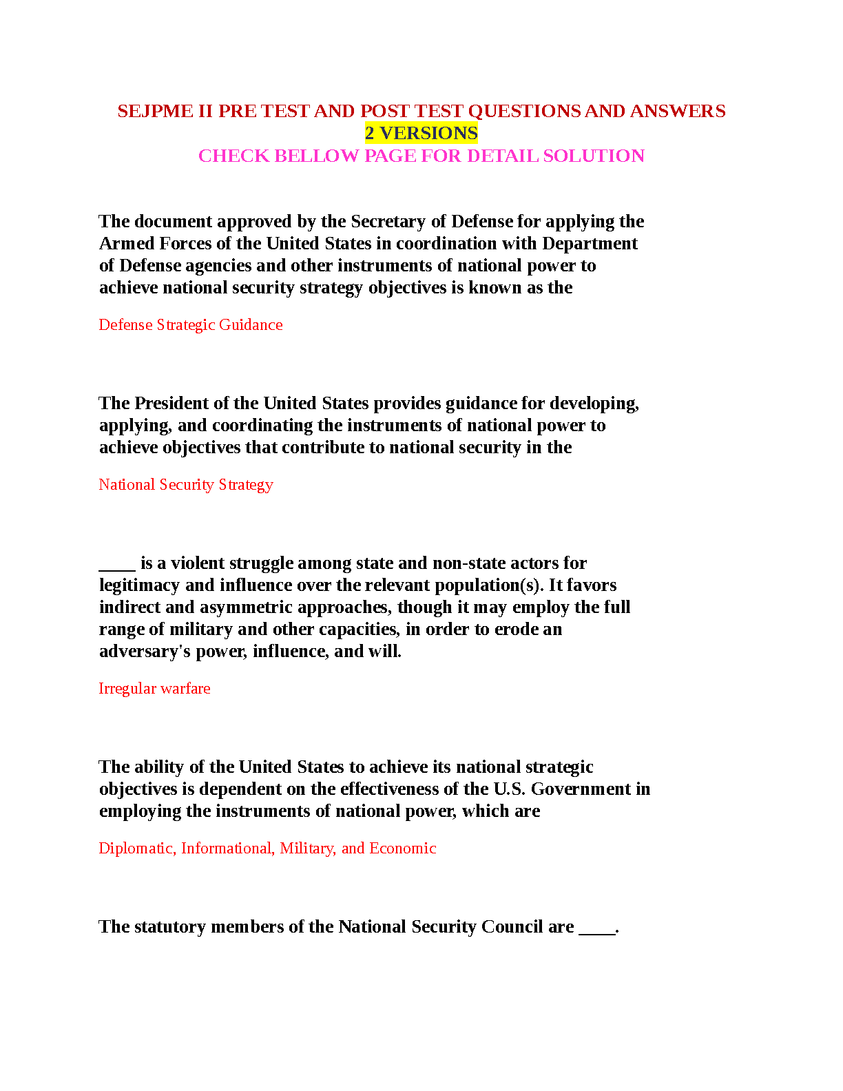SEJPME II Pre-Test and Post-Test Questions and Answers - 2 Versions - Ace Your Exam on the First Attempt
