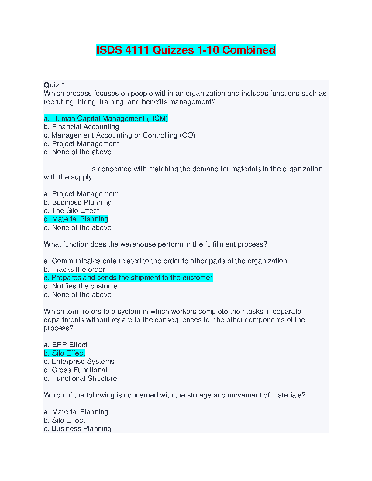 Prepare for ISDS 4111 exams with confidence. This resource encompasses quizzes 1-10, offering valuable insights into key concepts and providing targeted practice for a successful outcome.