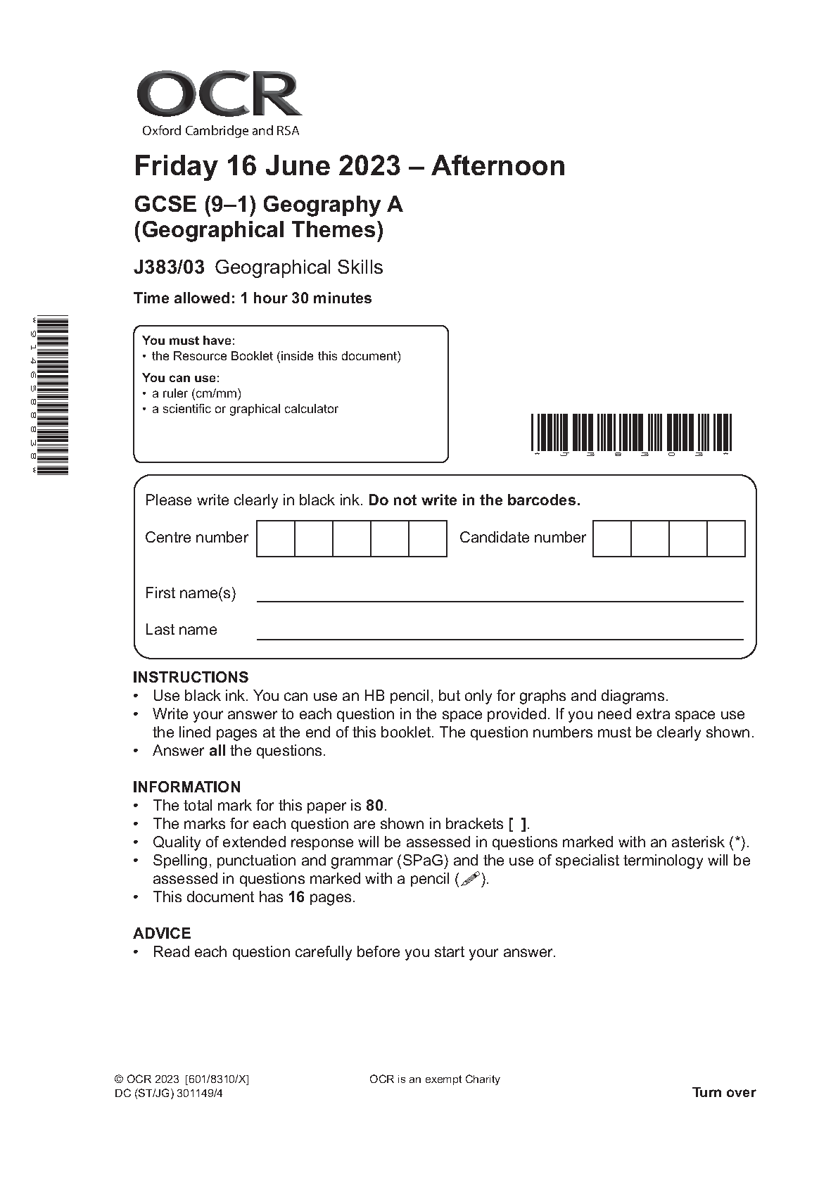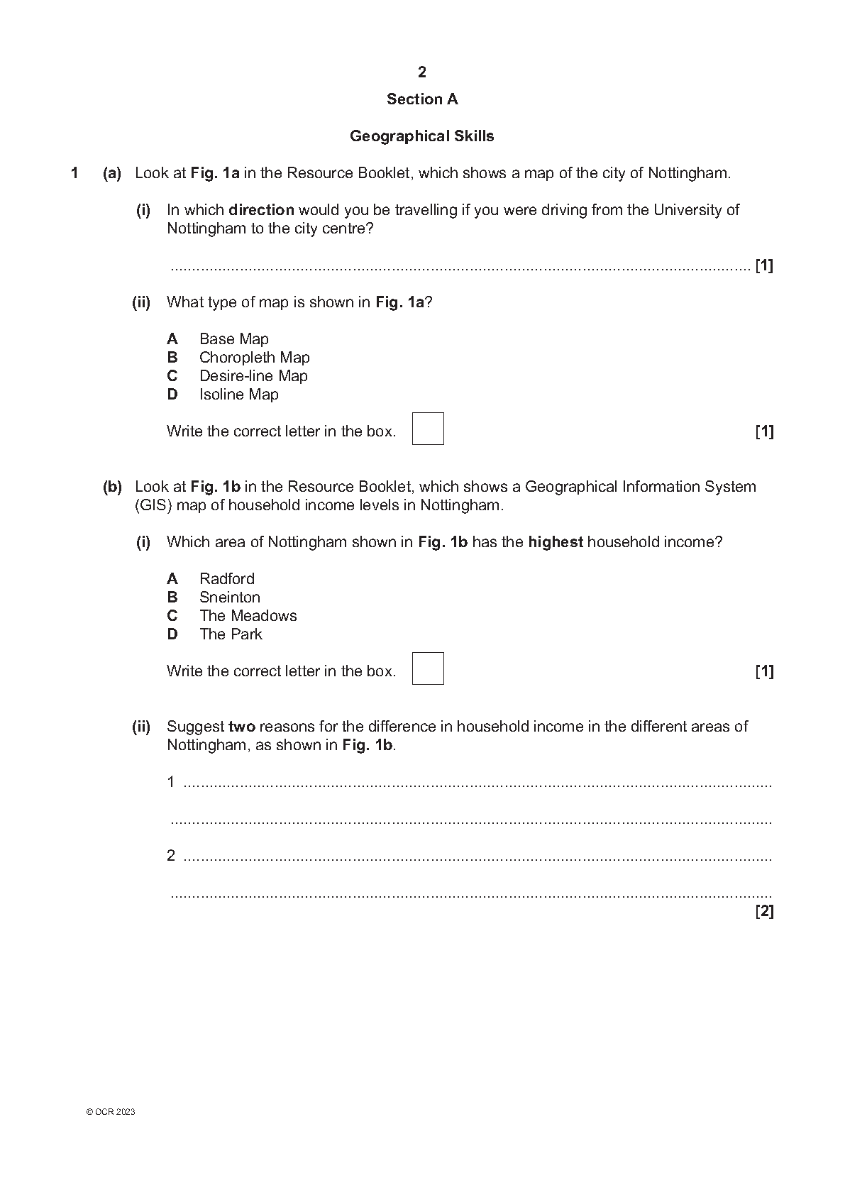 OCR GCSE Geography A Geographical Themes J383/03: Geographical Skills 2023 Question Paper & Mark Scheme (Merged)