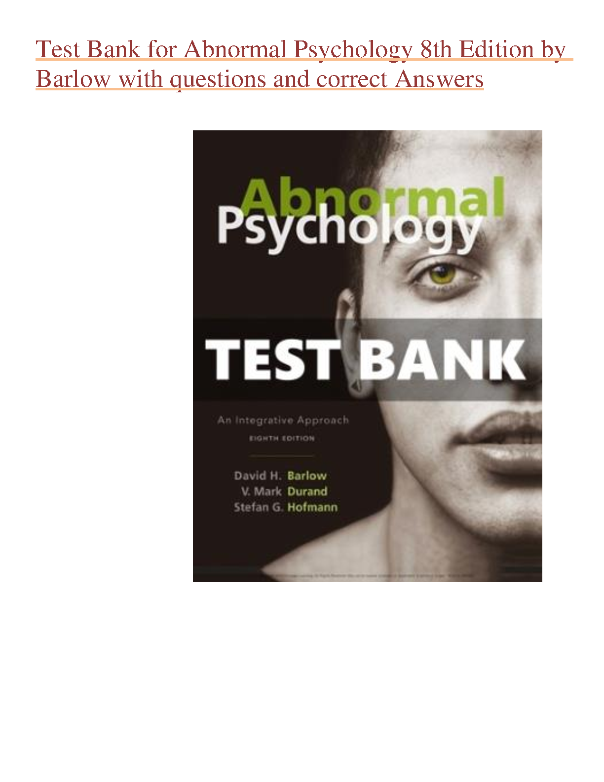Abnormal Psychology 8th Edition Test Bank by David Barlow, V Mark Durand, Stefan Hofmann