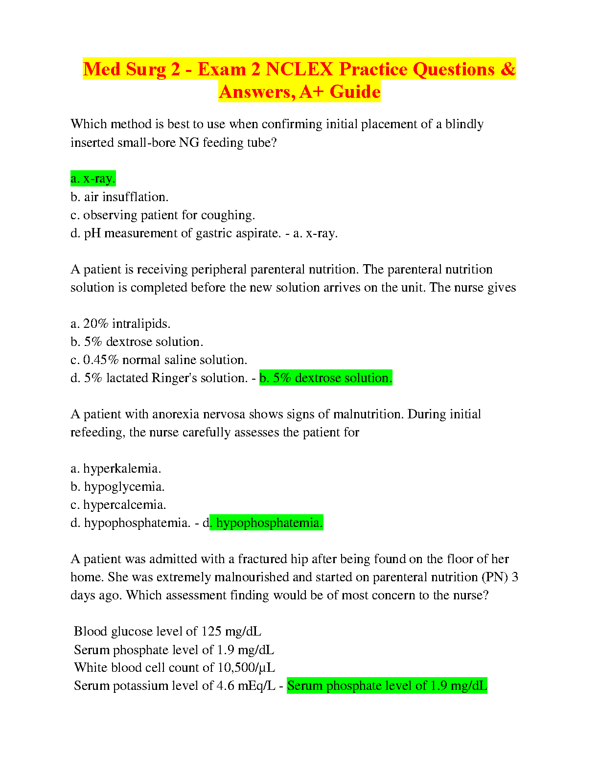 Ace your Med Surg 2 exam on the first attempt with this comprehensive NCLEX practice question bank and A+ guide for the 2024/2025 academic year! Learn and master essential concepts with detailed explanations and strategies for success.